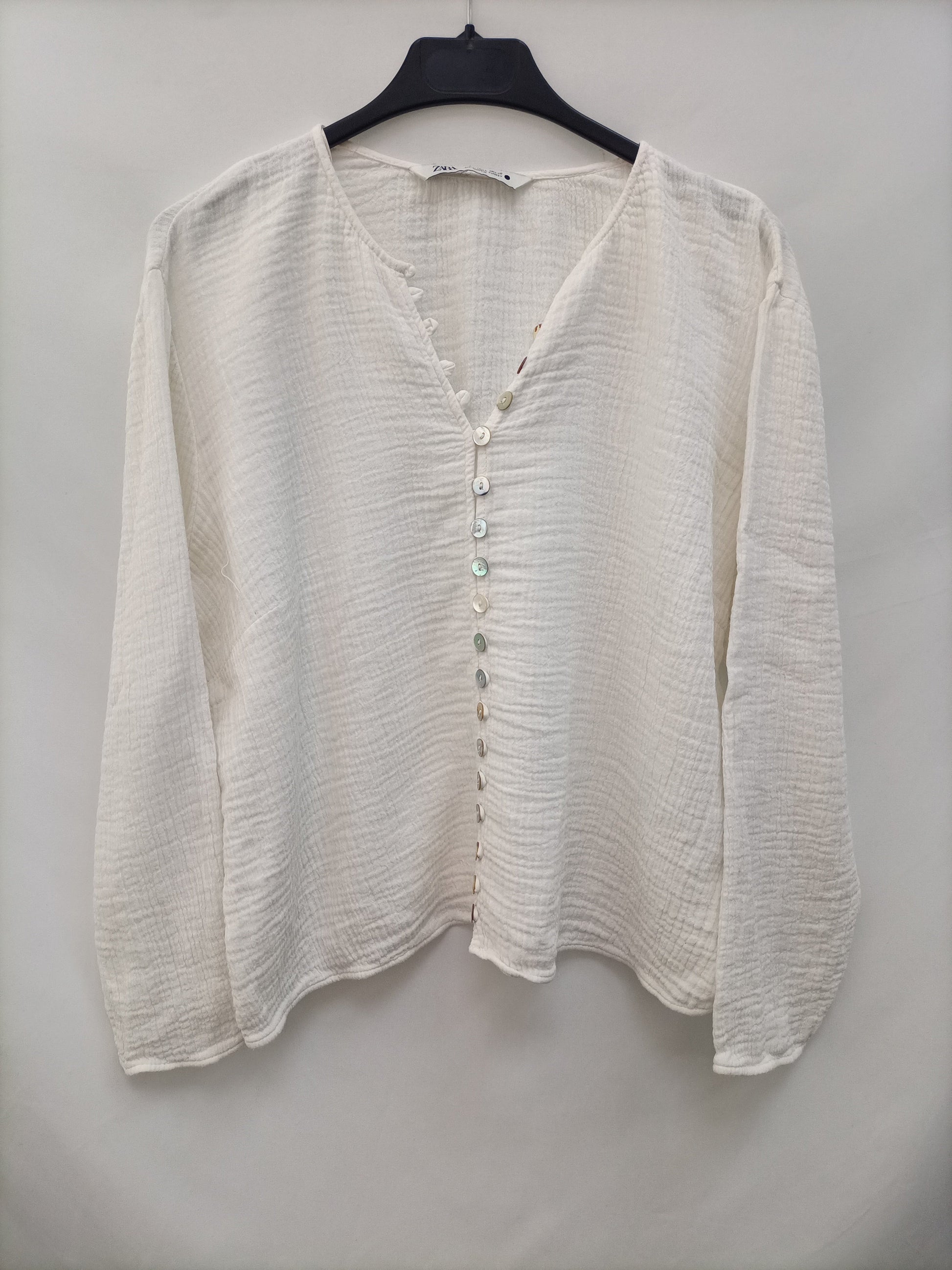 ZARA.Blusa blanca textura T.L
