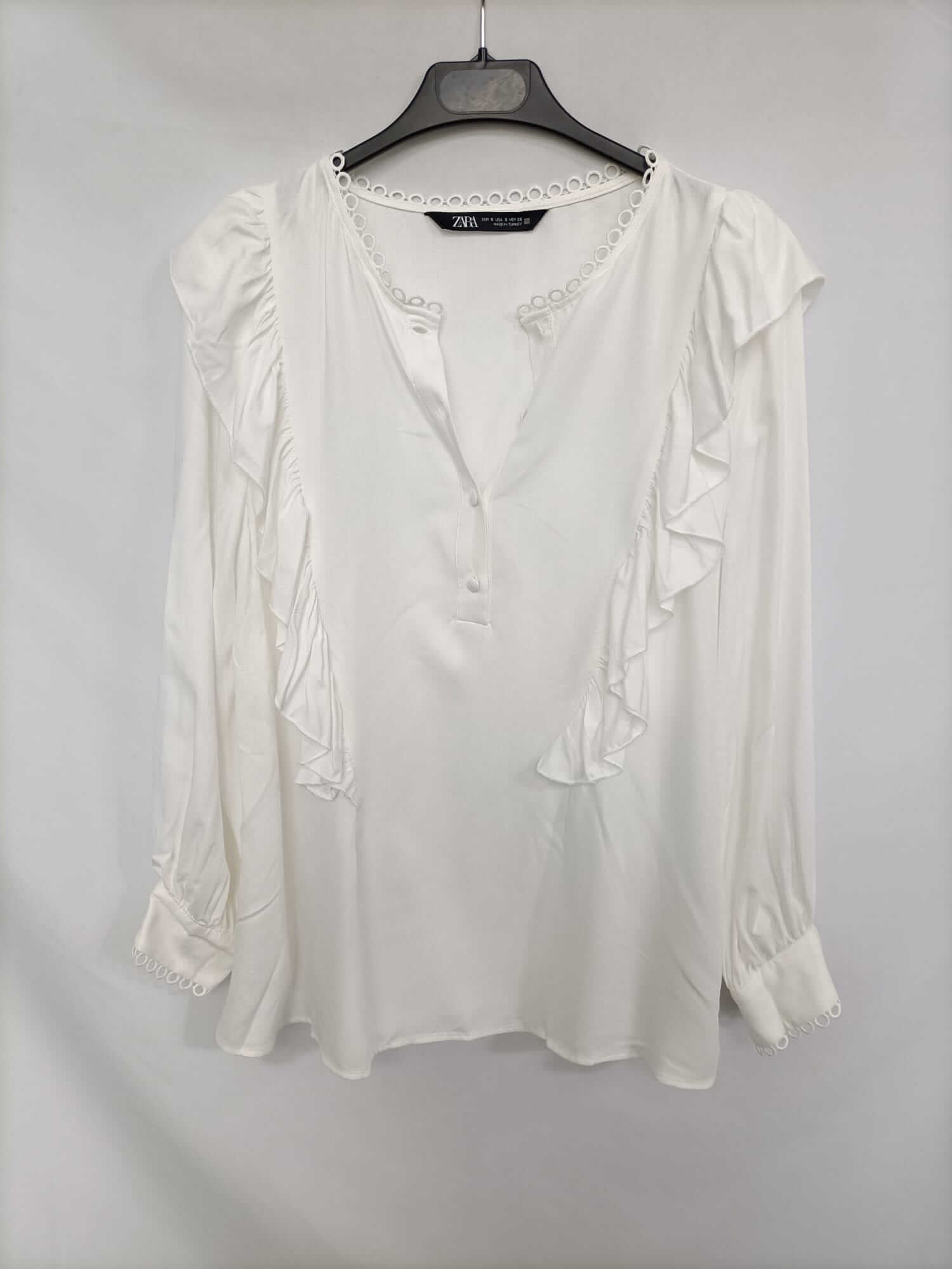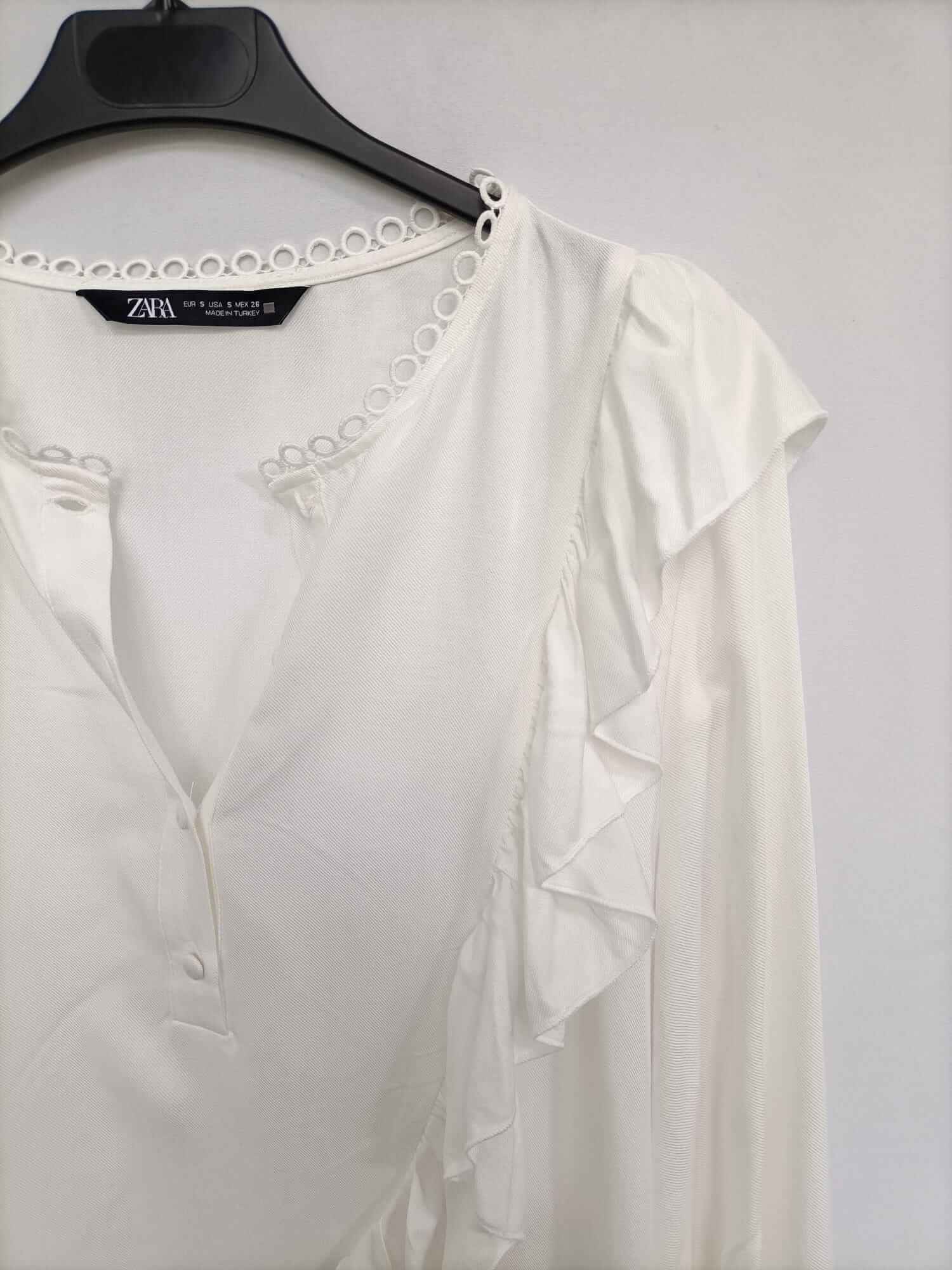 ZARA. Blusa blanca volantes T.s