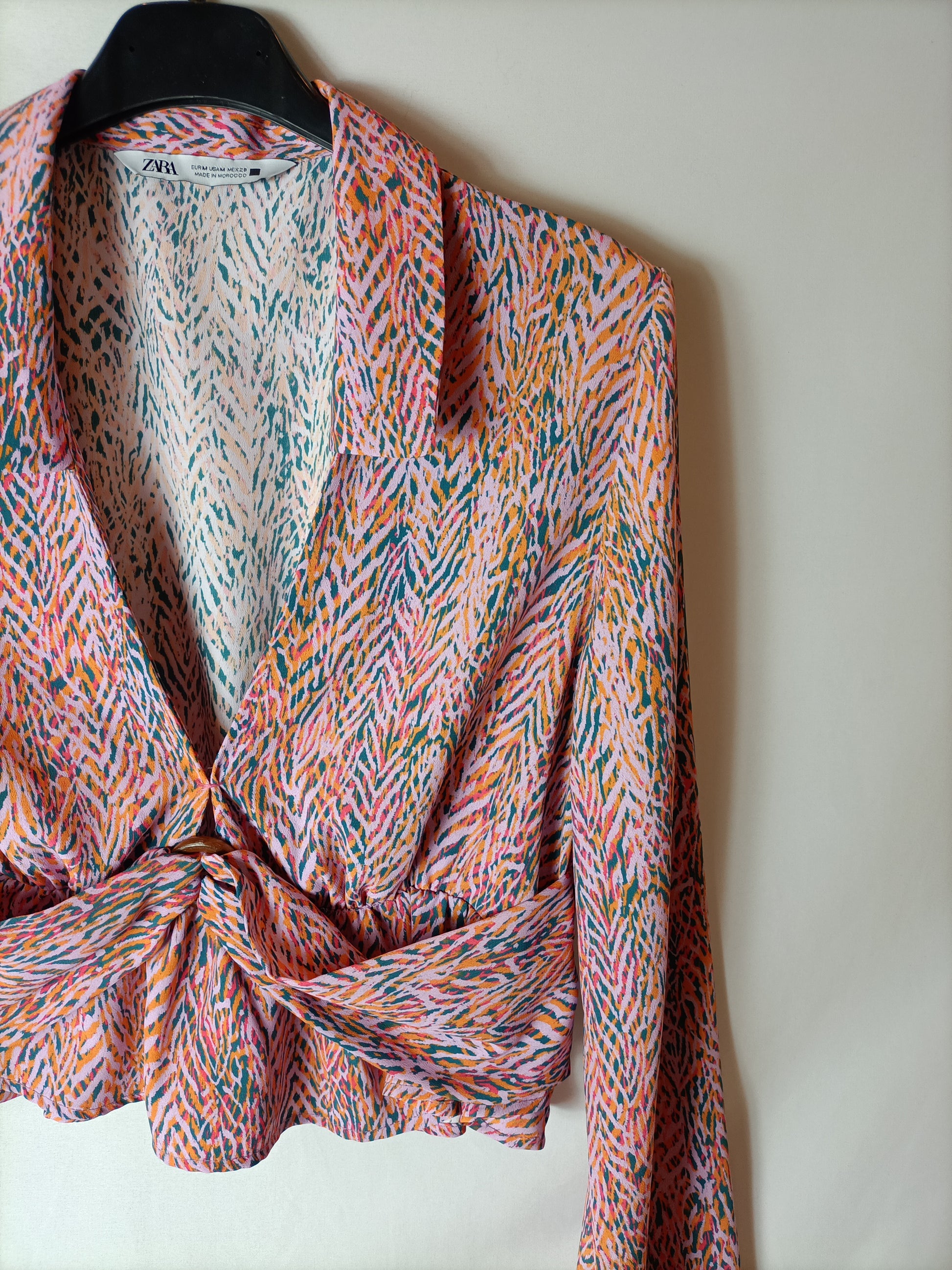 ZARA. Blusa crop rosa estampada. T M