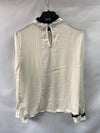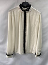 Blusa blanco roto fluida con detalle de ribete negro fruncido. Tiene un botón por detrás.
