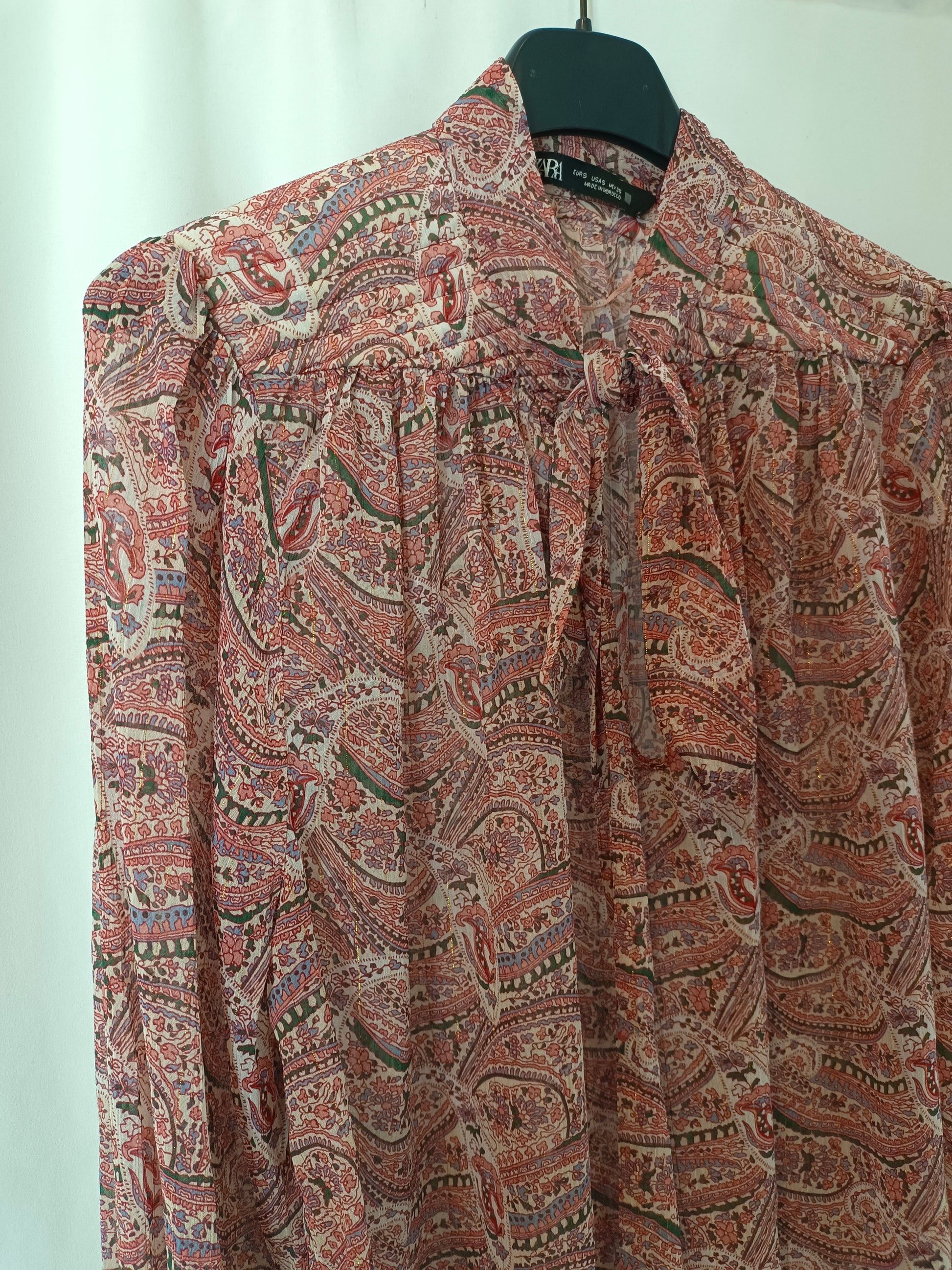 ZARA. Blusa estampada hilos brillo. T S