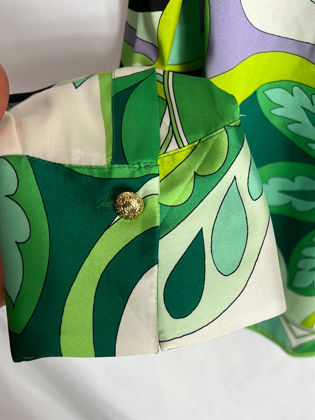 NUEVO CON ETIQUETA. Blusa estampada satinada. Largo 64cm