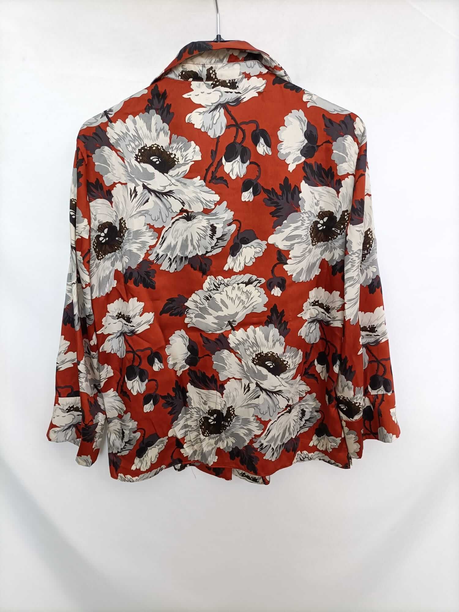 Zara. Xs. Blusa color teja con flores estilo pijamera. Fluida y finita. No elastico. De sisa a sisa 51 cm largo 65 cm