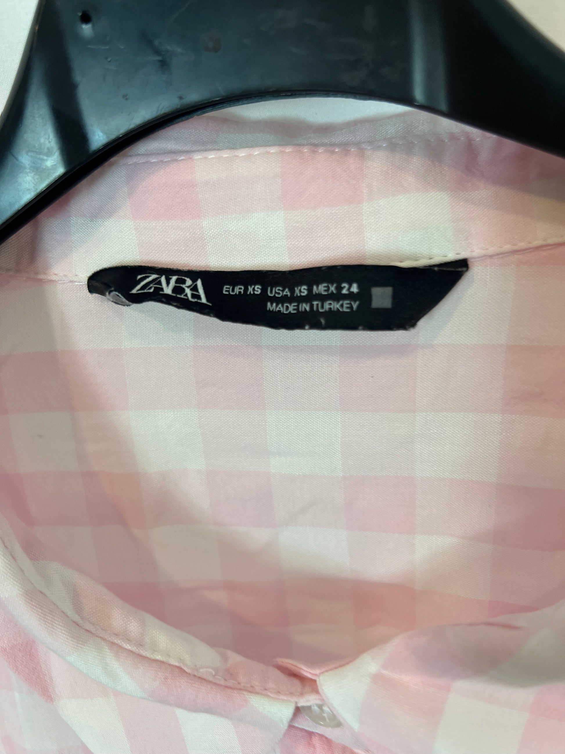 ZARA. Blusa fluida cuadros tonos rosas. T XS