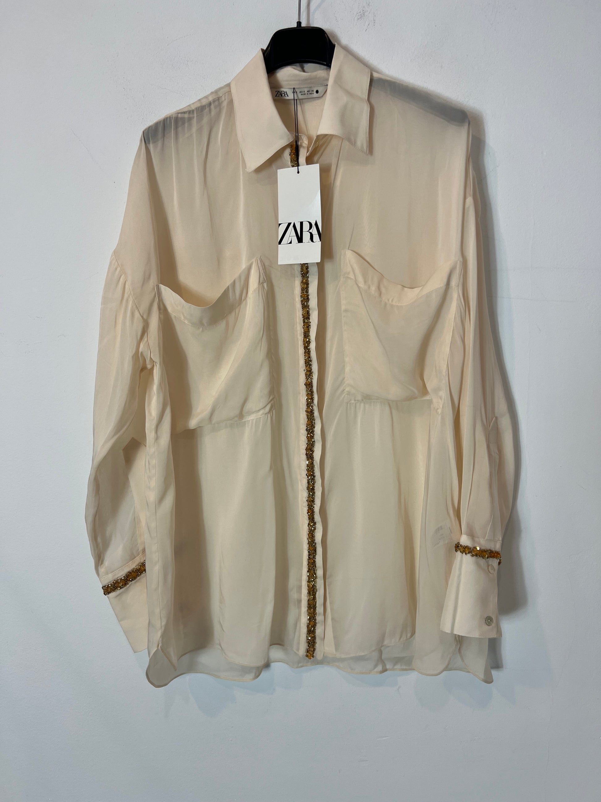 NUEVO CON ETIQUETA. Blusa fluida detalle pedrería viscosa. largo 75 cm, epatada 53cm