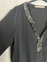 ZARA. Blusa larga negra satinada detalle pedrería. T XL