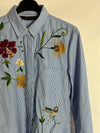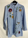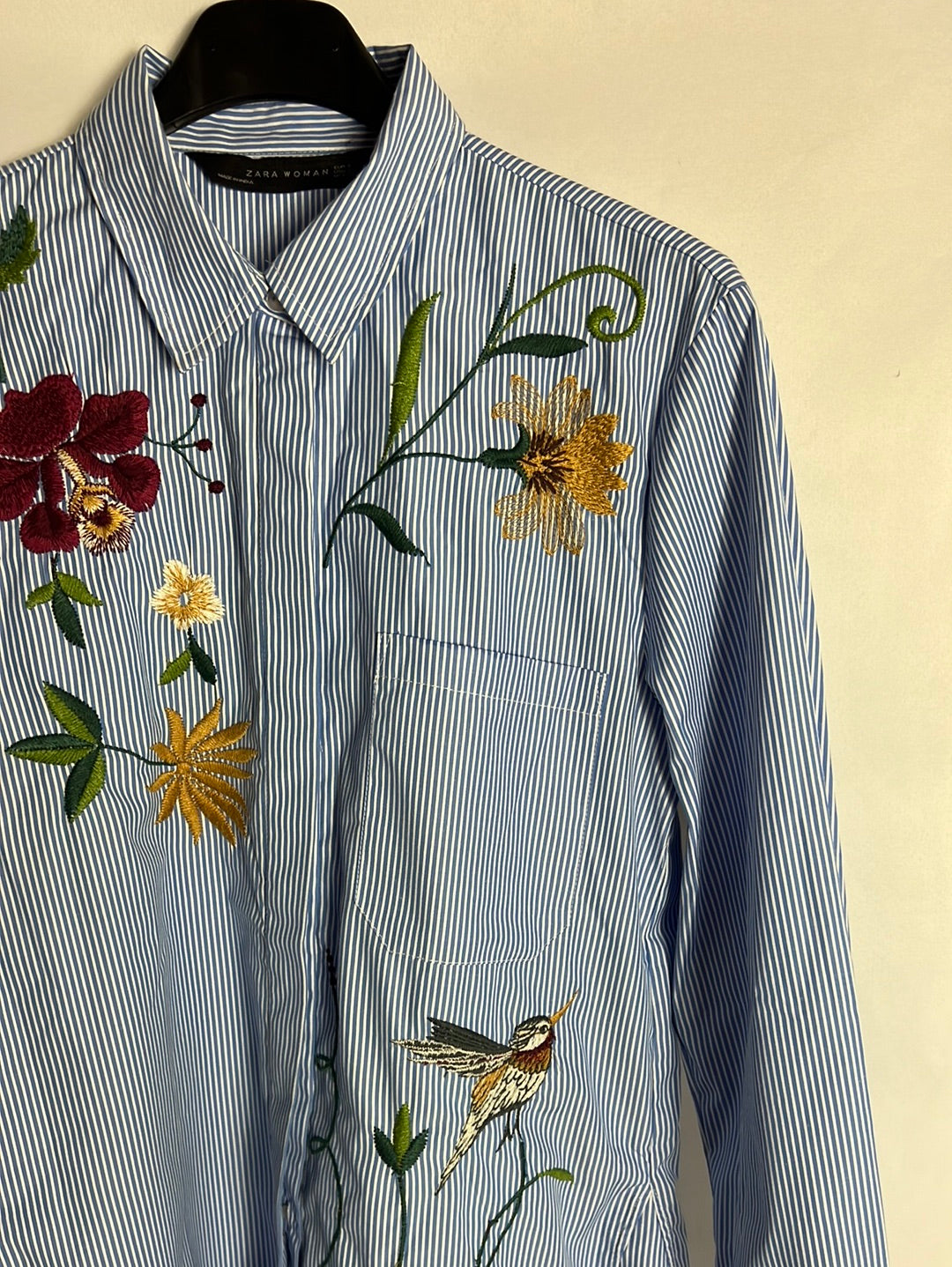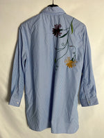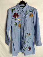Blusa larga rayas bordados. Aperturas laterales. Tejido no elástico