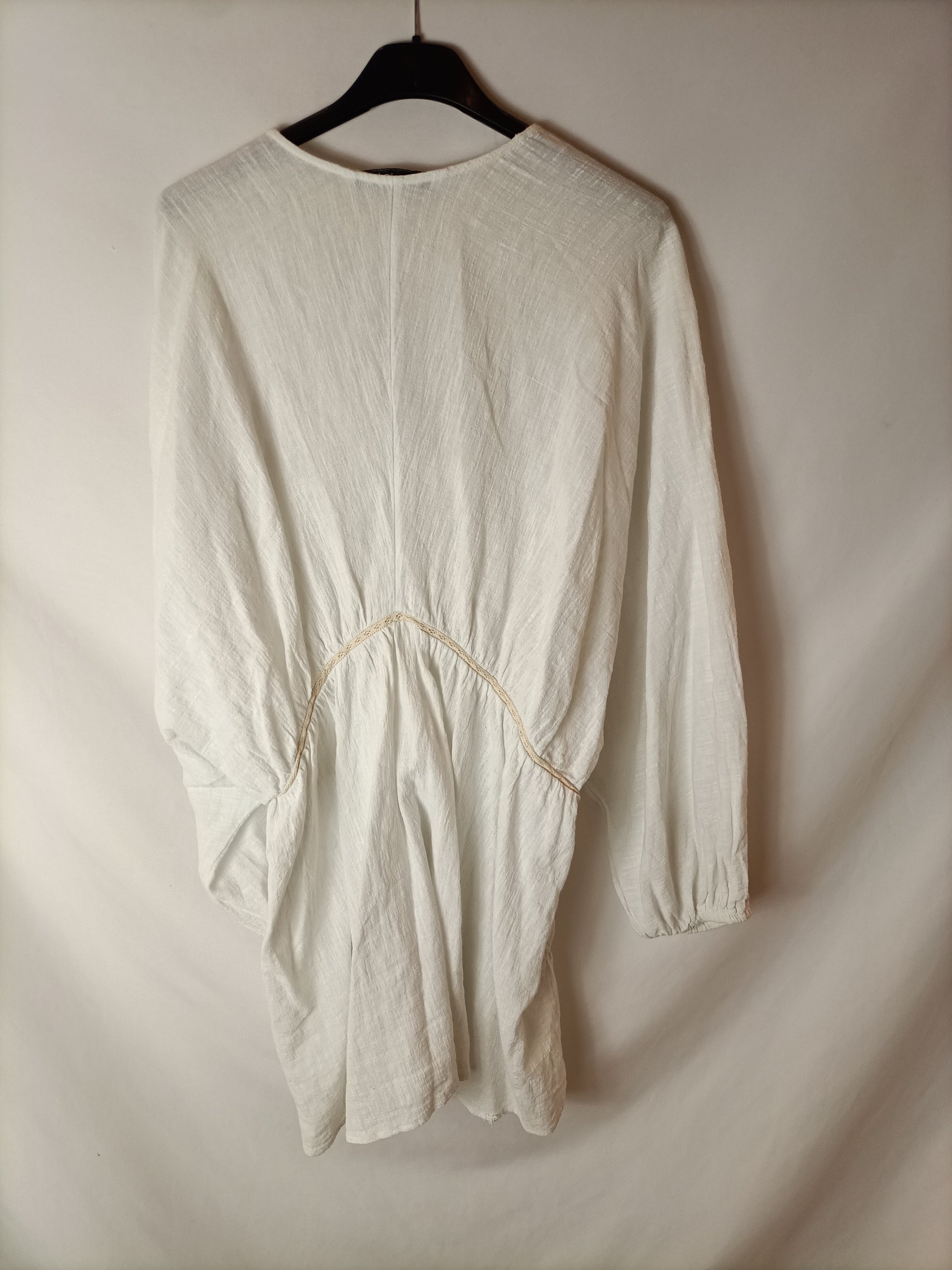 ZARA. Blusa larga/vestido blanco roto. T L