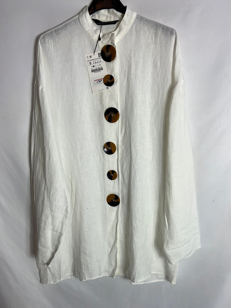 ZARA. Blusa lino blanca botones. T S