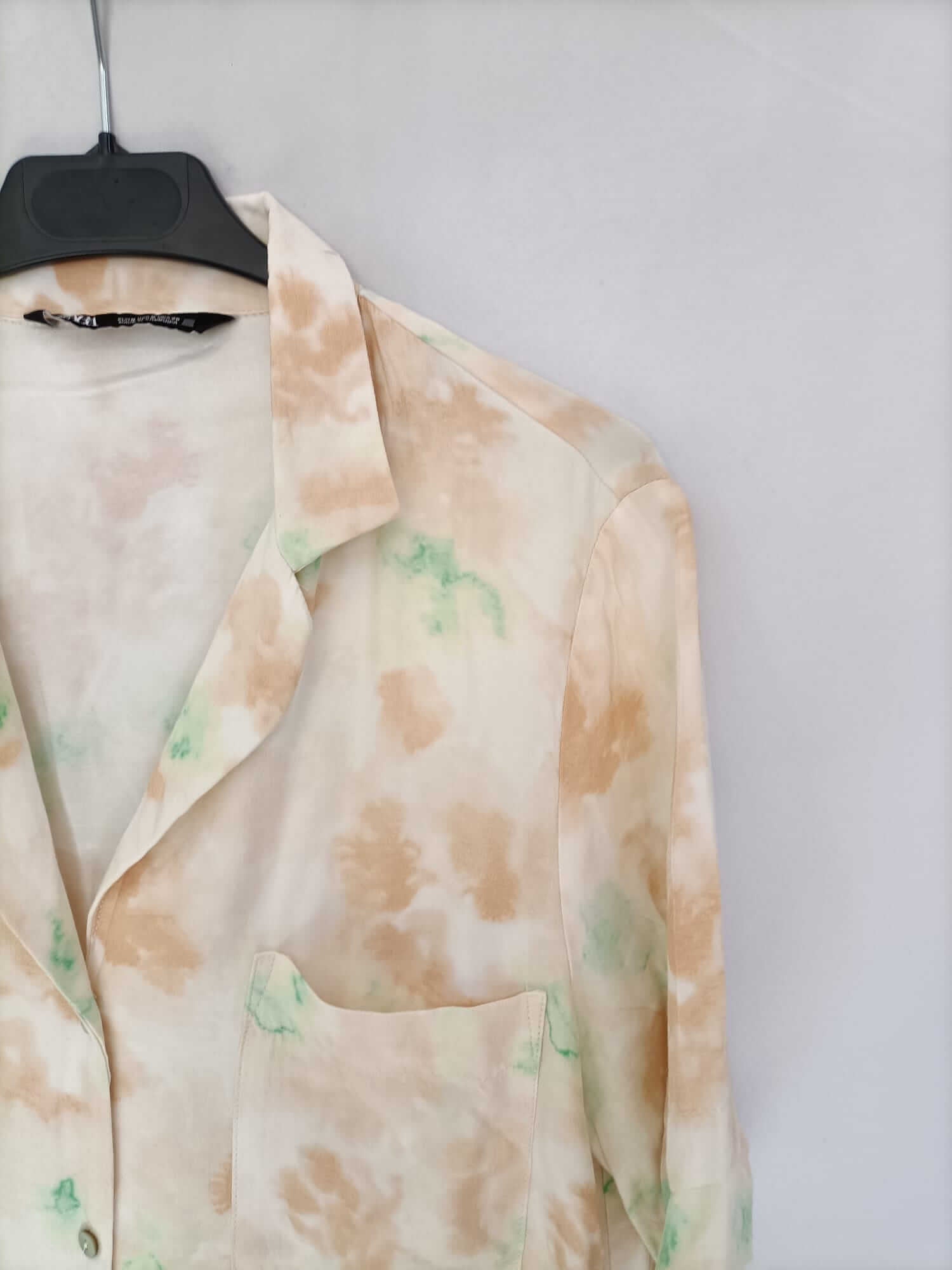 Zara. S. Blusa fluida estampada. Manga corta y Abotonada. No elástica. De sisa a sisa 48 cm largo 76. M