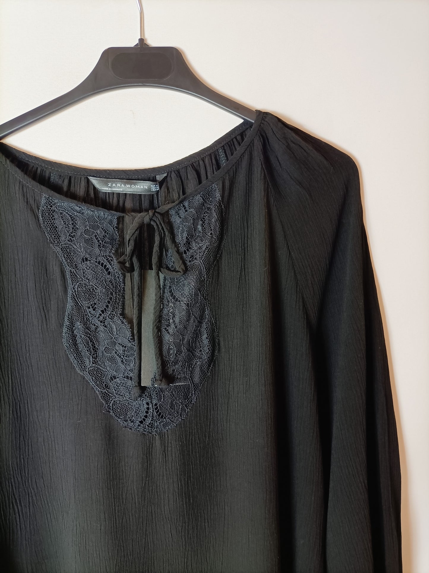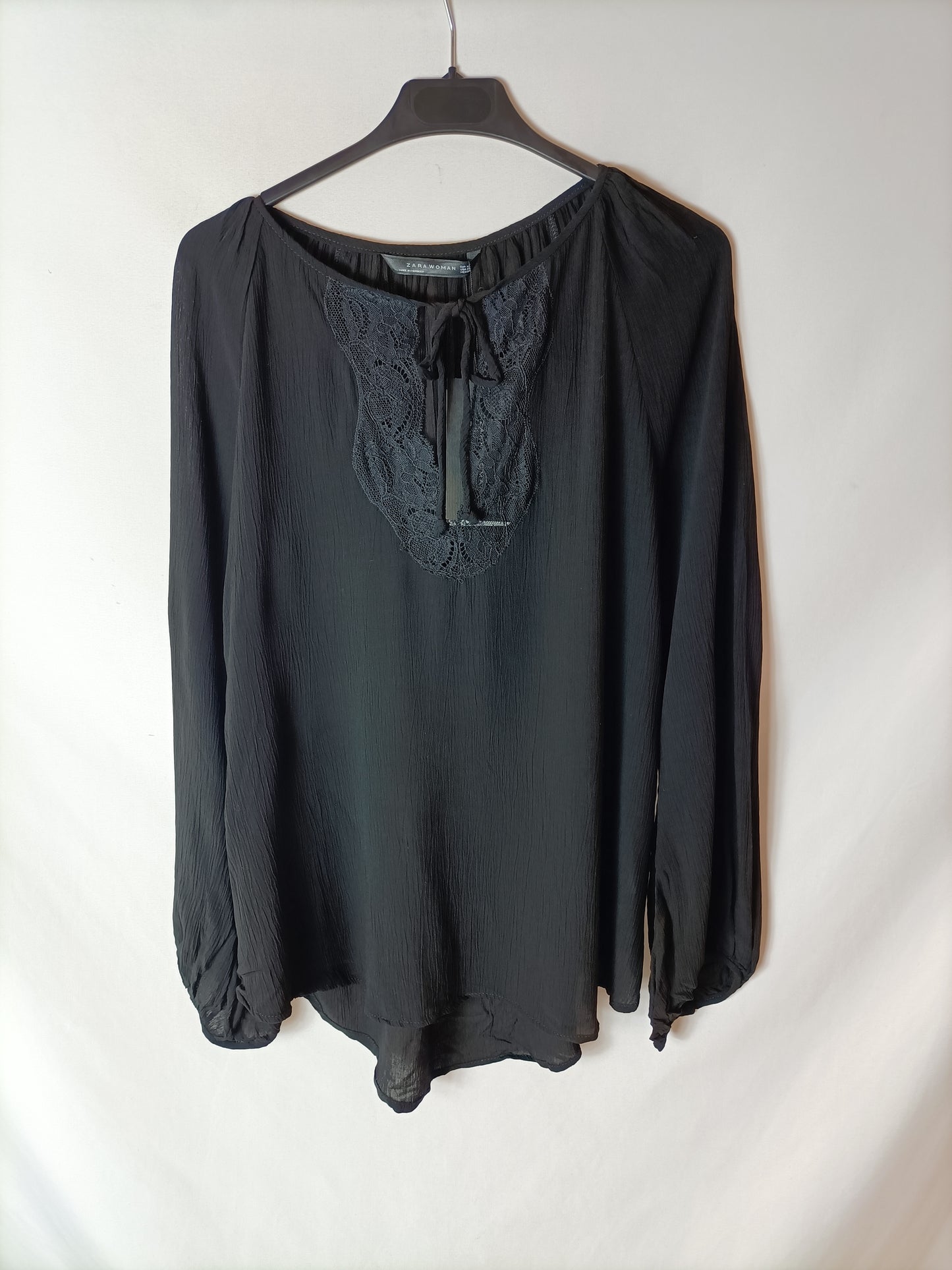 ZARA. blusa negra encaje T.xs