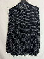 ZARA. Blusa negra lunares blancos bolsillos. T XL