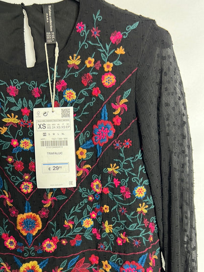 NUEVO CON ETIQUETA. Blusa negra de plumeti bordada.