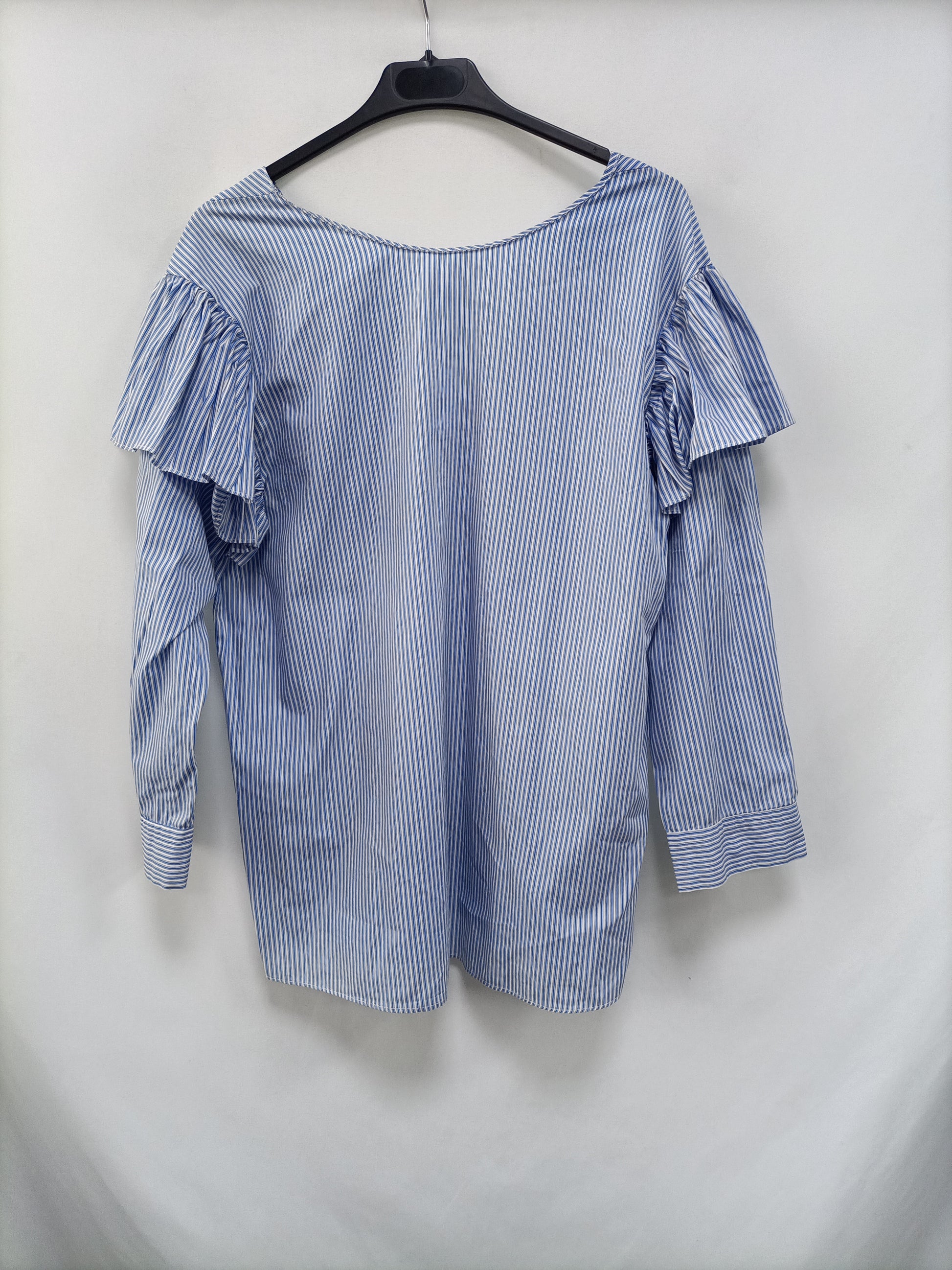blusa de rayas blanca y azul con volantes en los hombros. de sisa a sisa 50 cm largo 57 cm