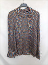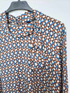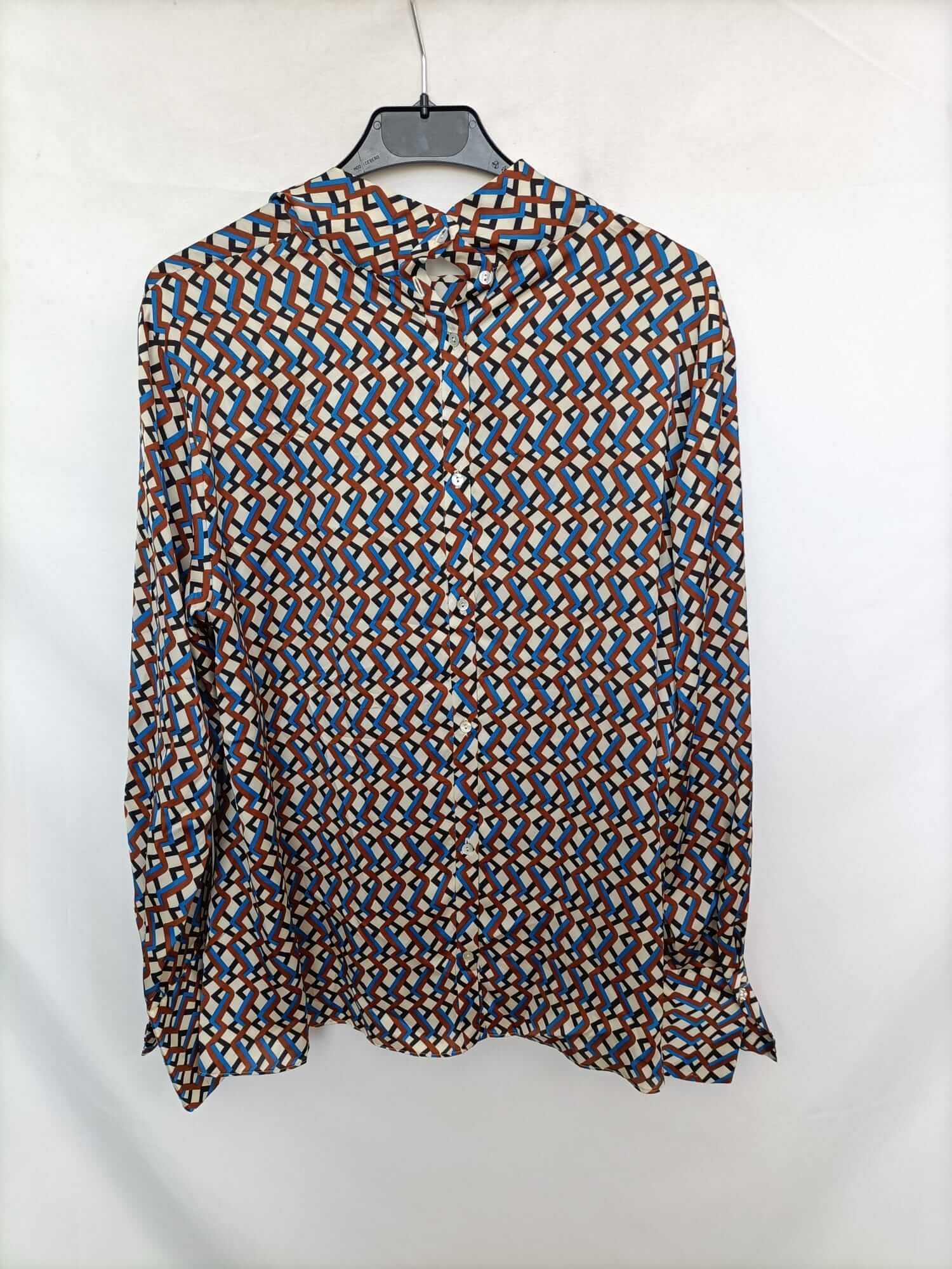 Zara.m. blusa fluida estampada con cuello perkins con lazada. Muy finita. Abotonada por la espalda. De sisa a sisa 50 cm largo 67 cm