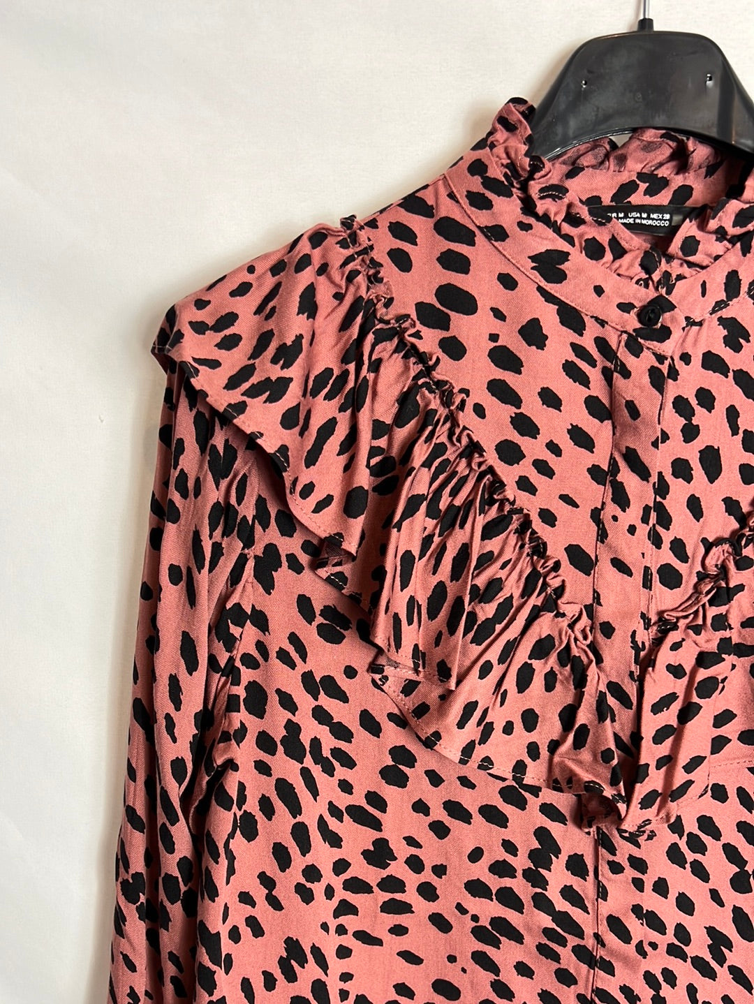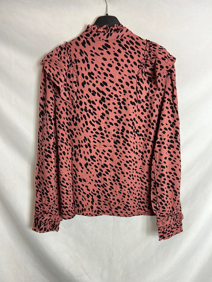 ZARA. Blusa rosa y negra volante. T M