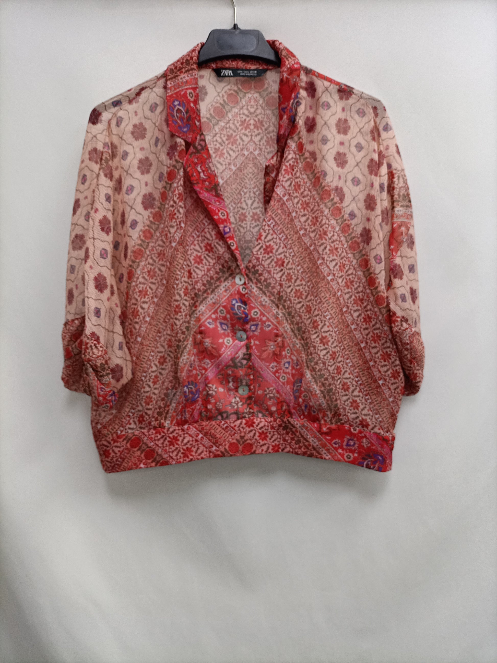 ZARA.Blusa semitransparente T.L