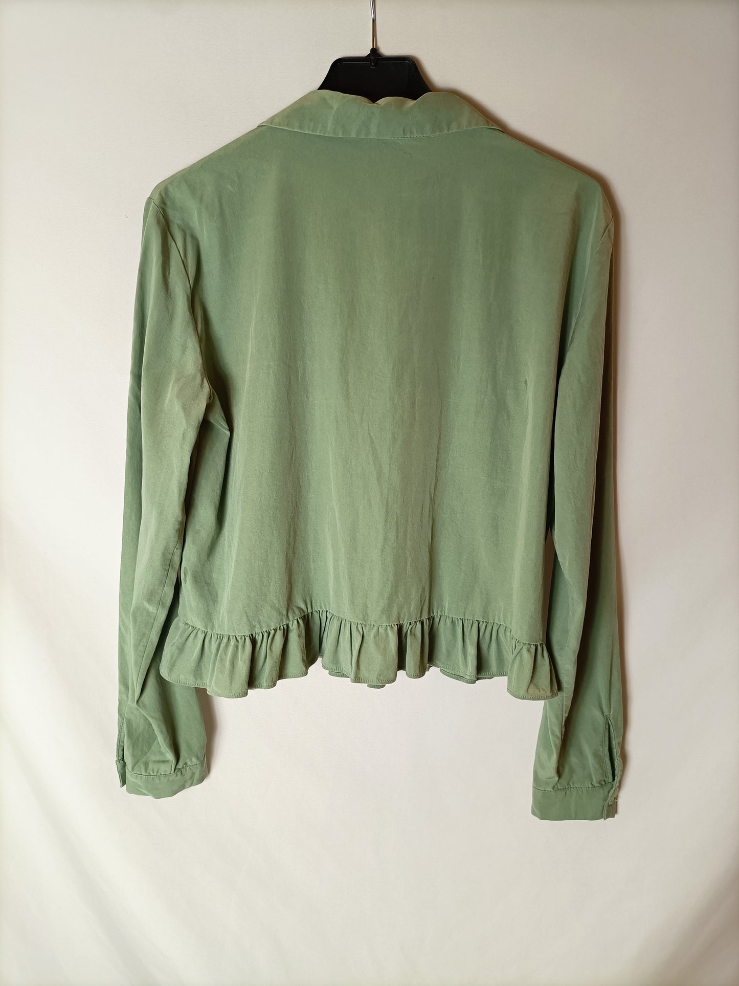 ZARA. Blusa verde corta volante. T S