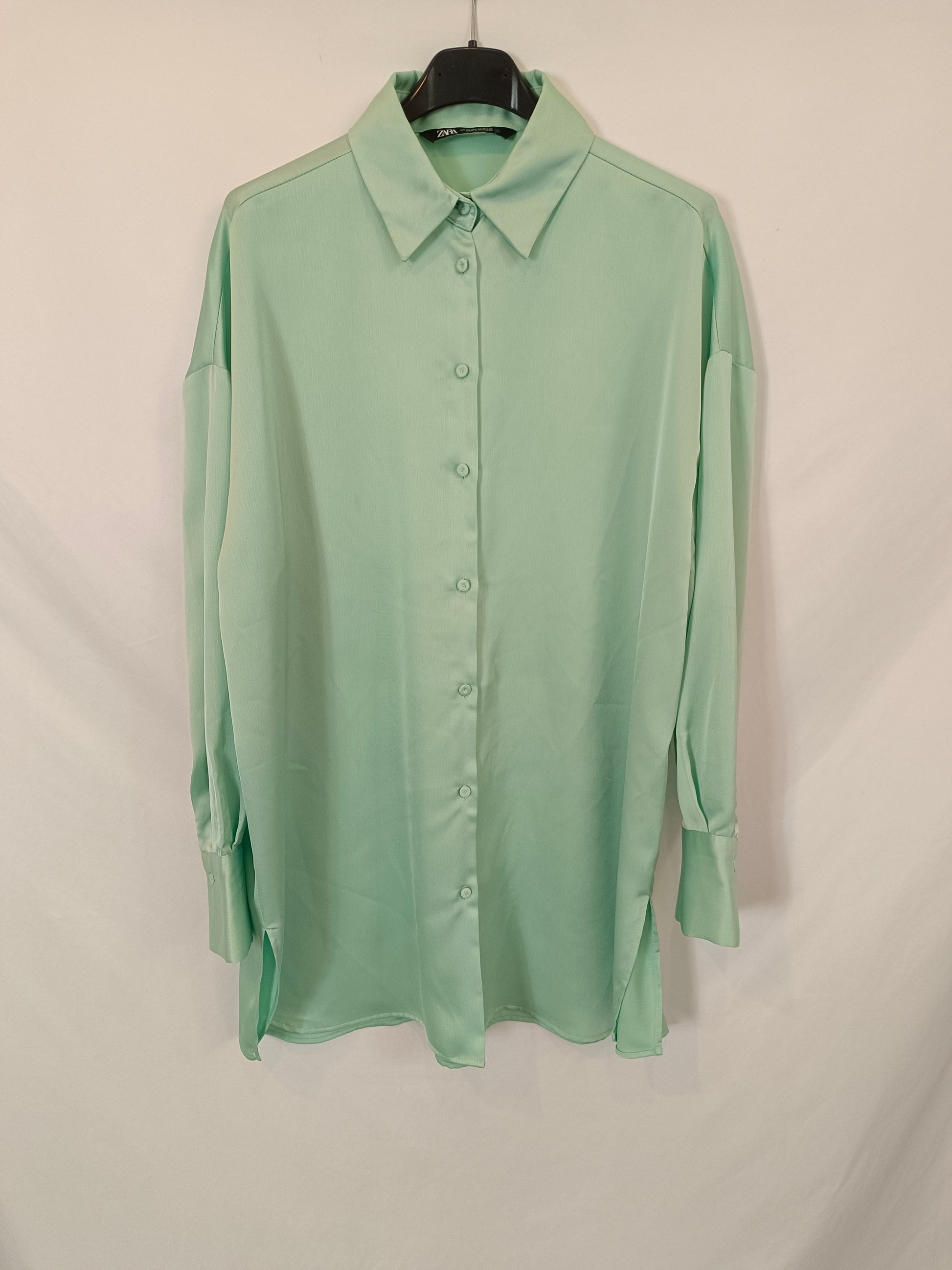ZARA. Blusa verde satinado T.xs