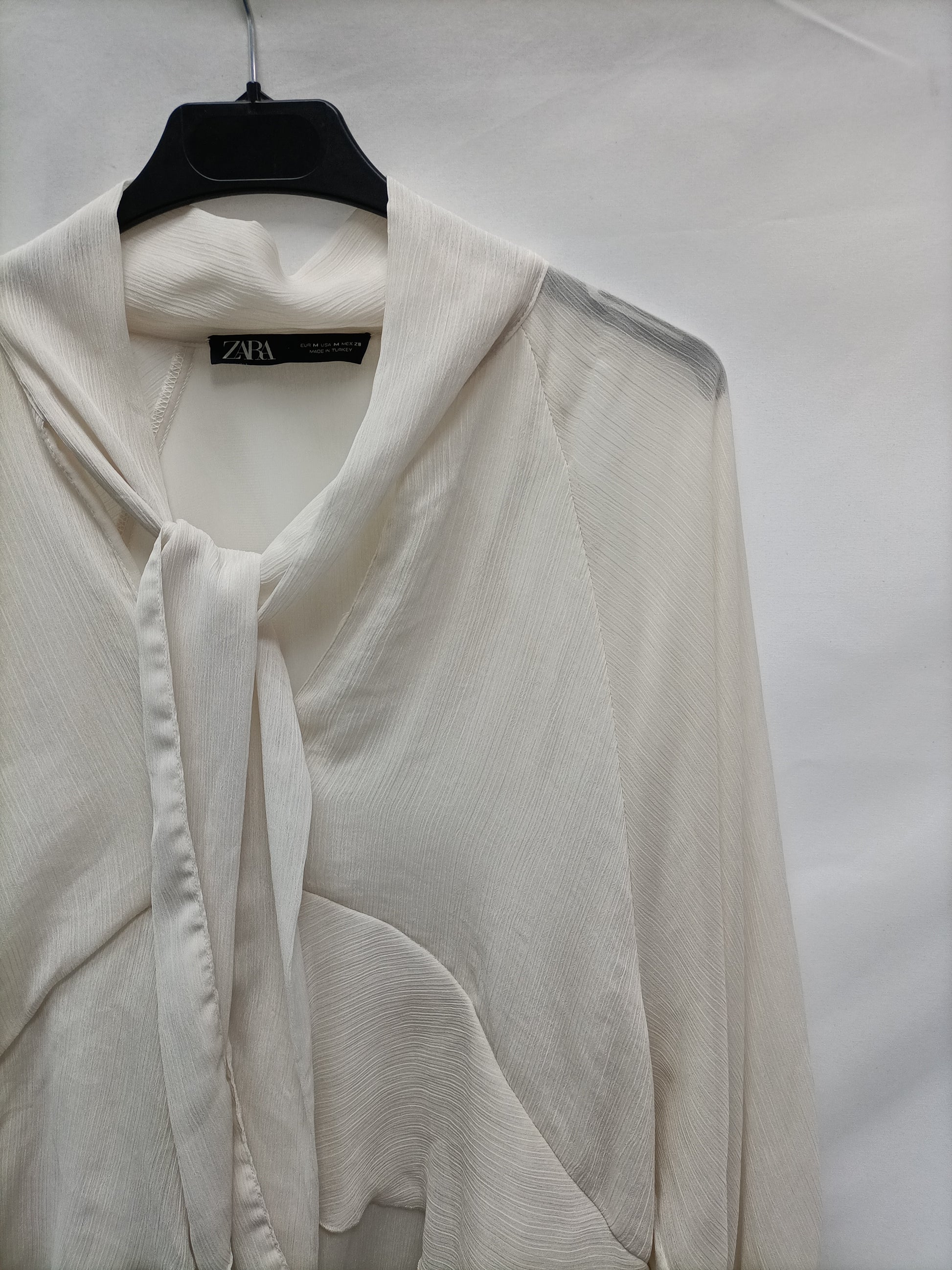 ZARA. Blusa volantes fluida beige T.m