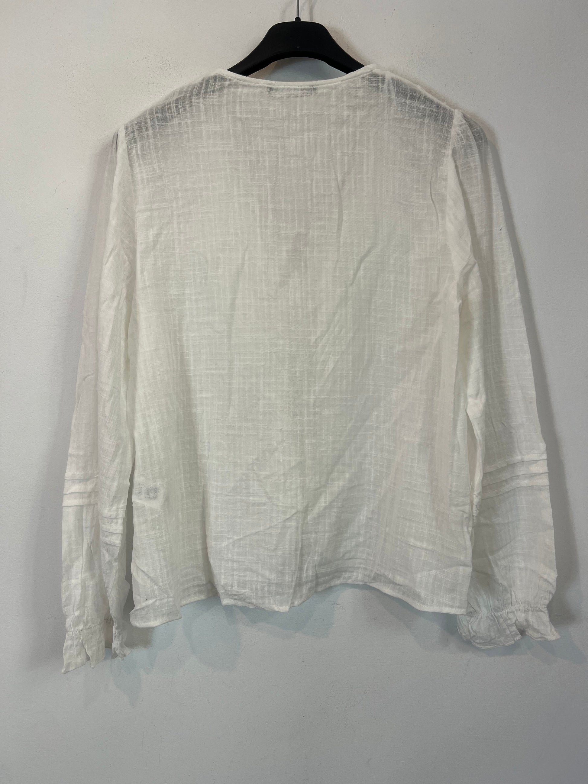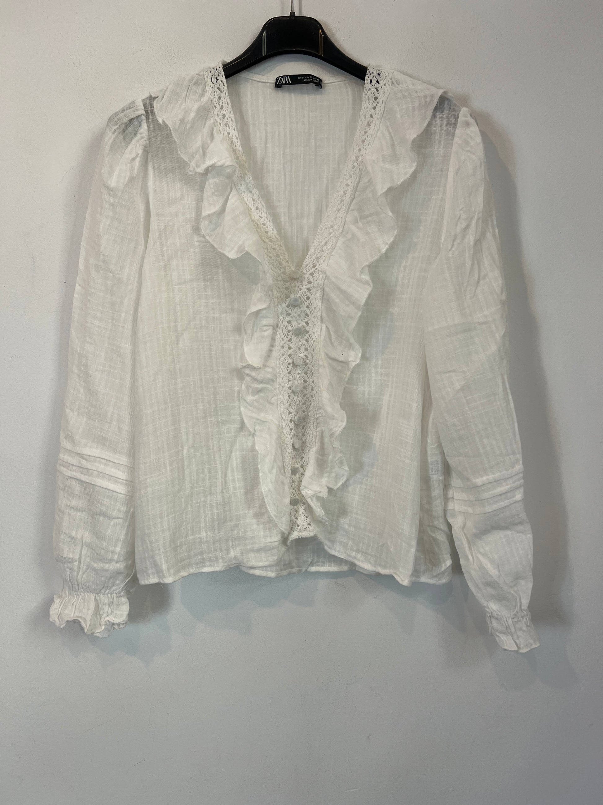 ZARA. Blusas blanca algodón volantes T.s