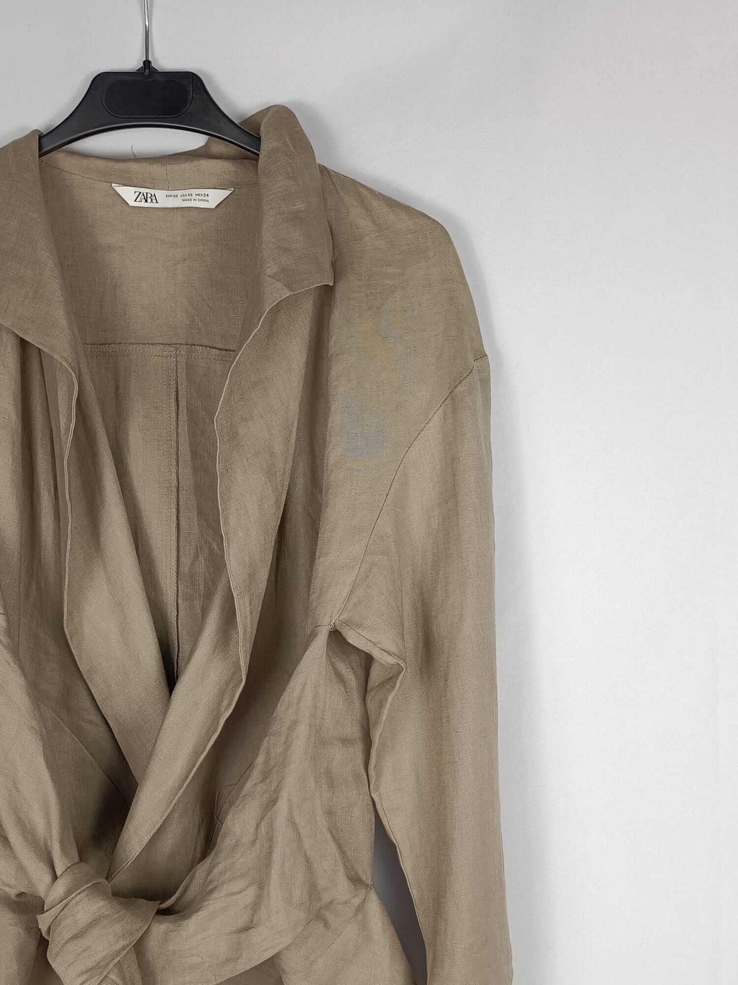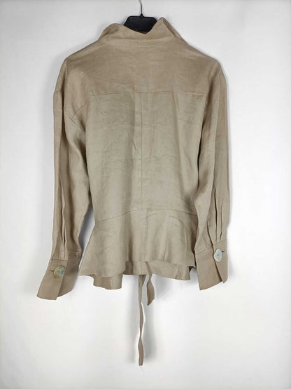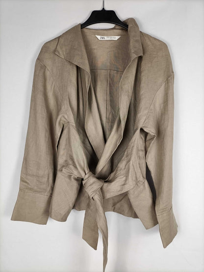 ZARA. Blusa/sobrecamisa lino beige T.xs