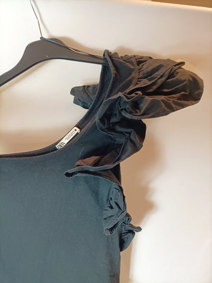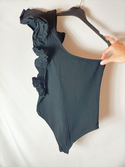 ZARA. Body negro asimétrico T.xs