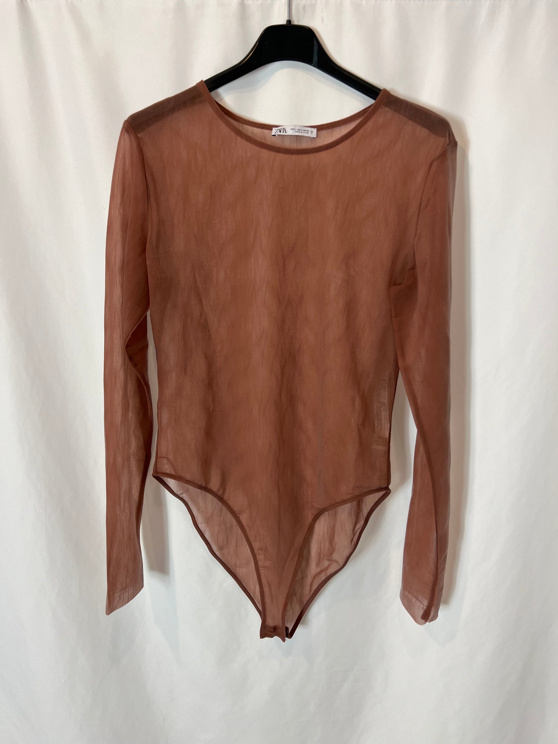 body rosa semitransparente de tull. Elástico. Largo 69cm