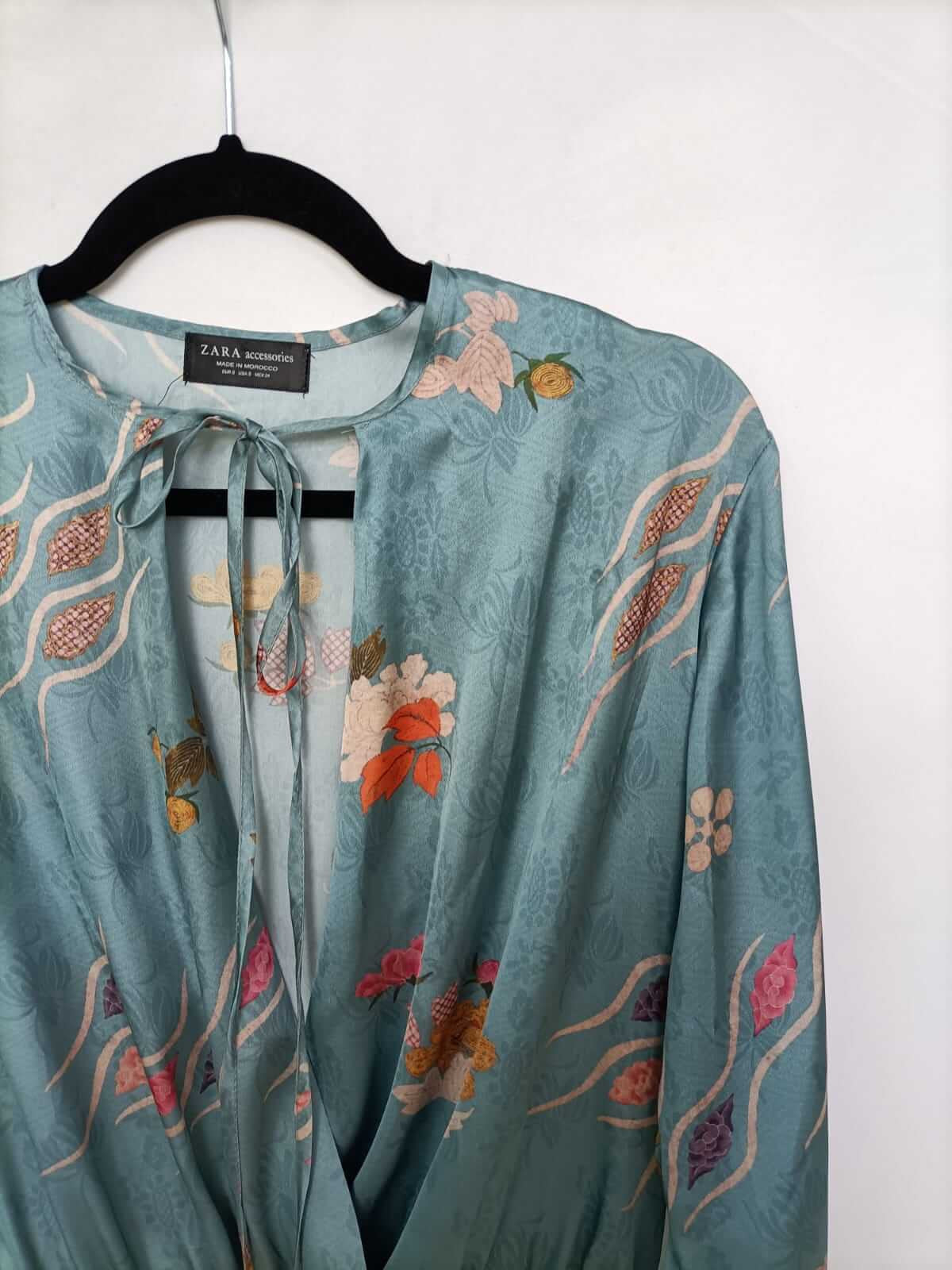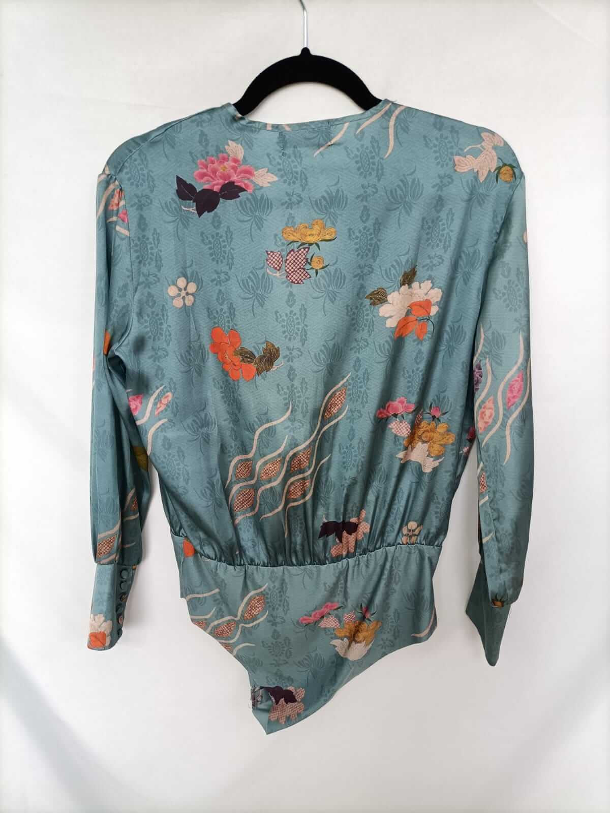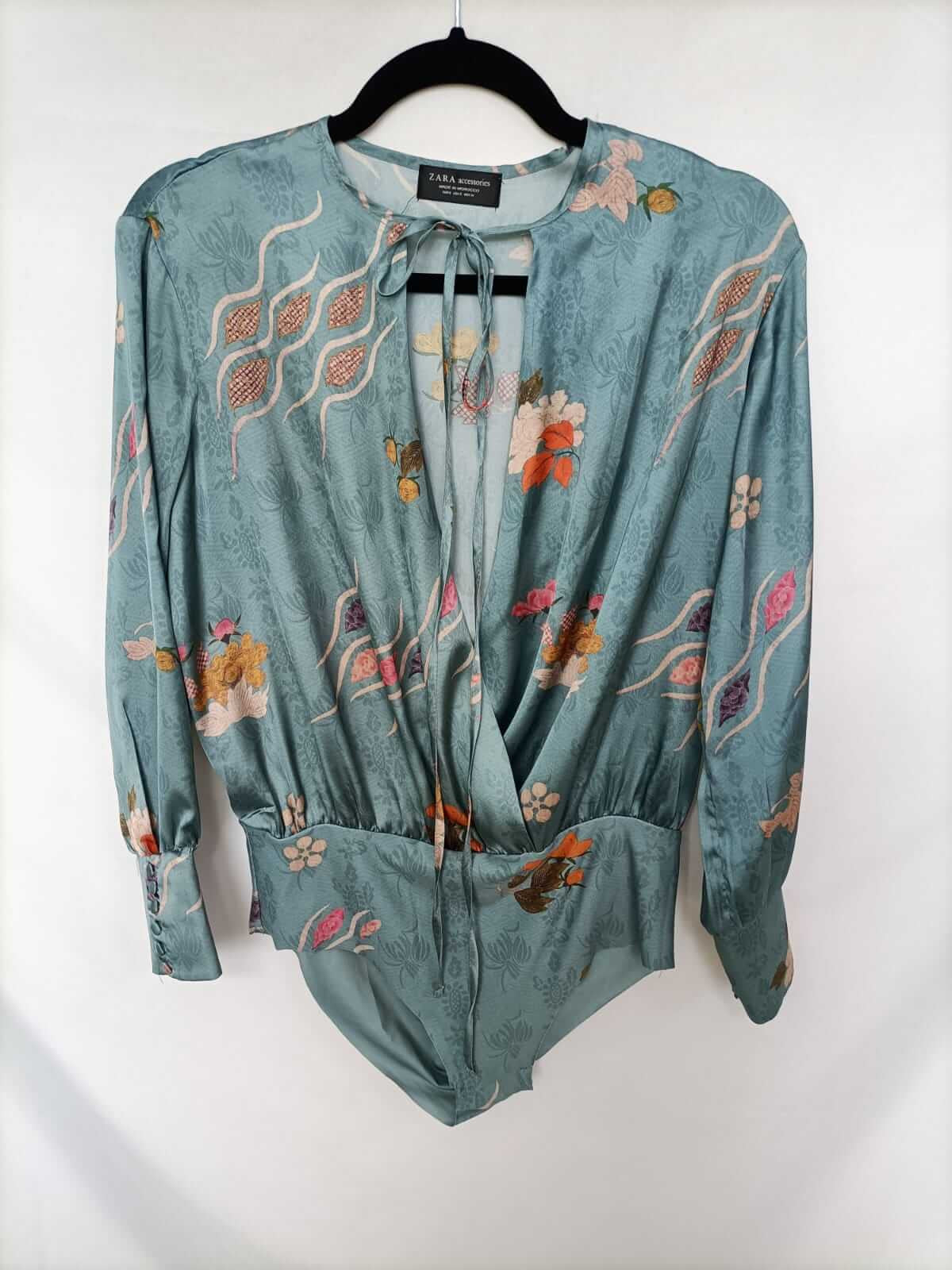 Zara. S. body azul agua con flores escote pronunciado. Fluido. No elástico. De sisa a sisa 55 cm largo 74 cm
