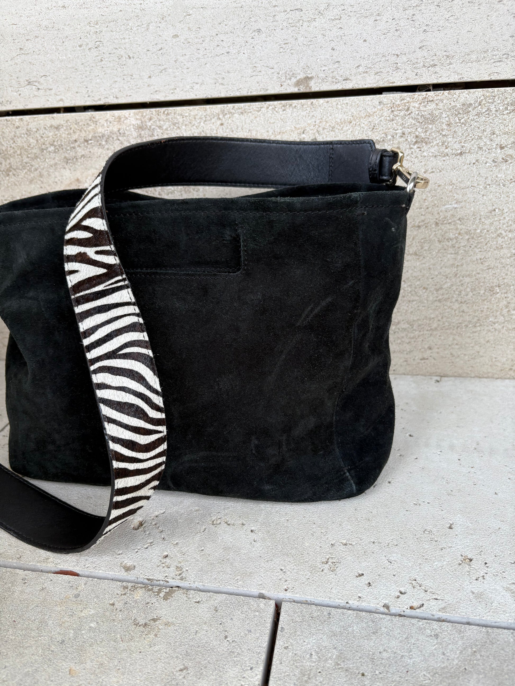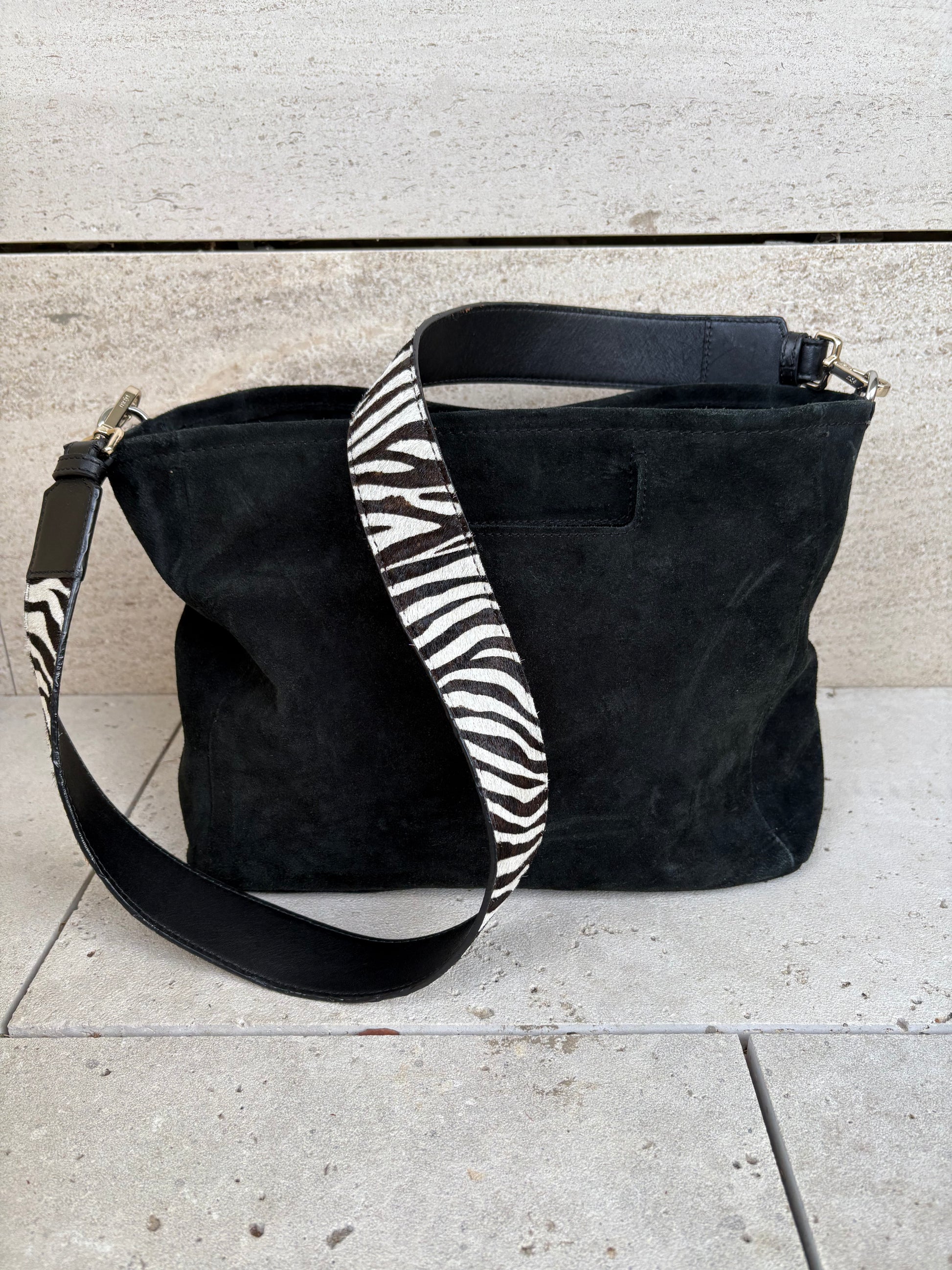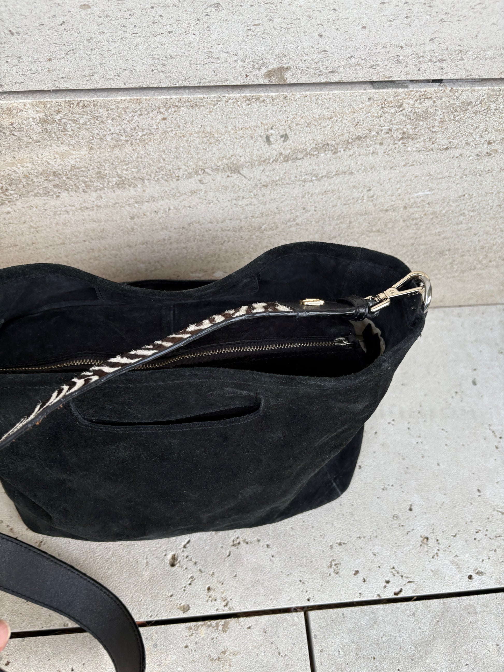 bolso negro estilo shopper con asa print. 100%piel . ancho 40 cm alto 24 cm fondo 13 cm.