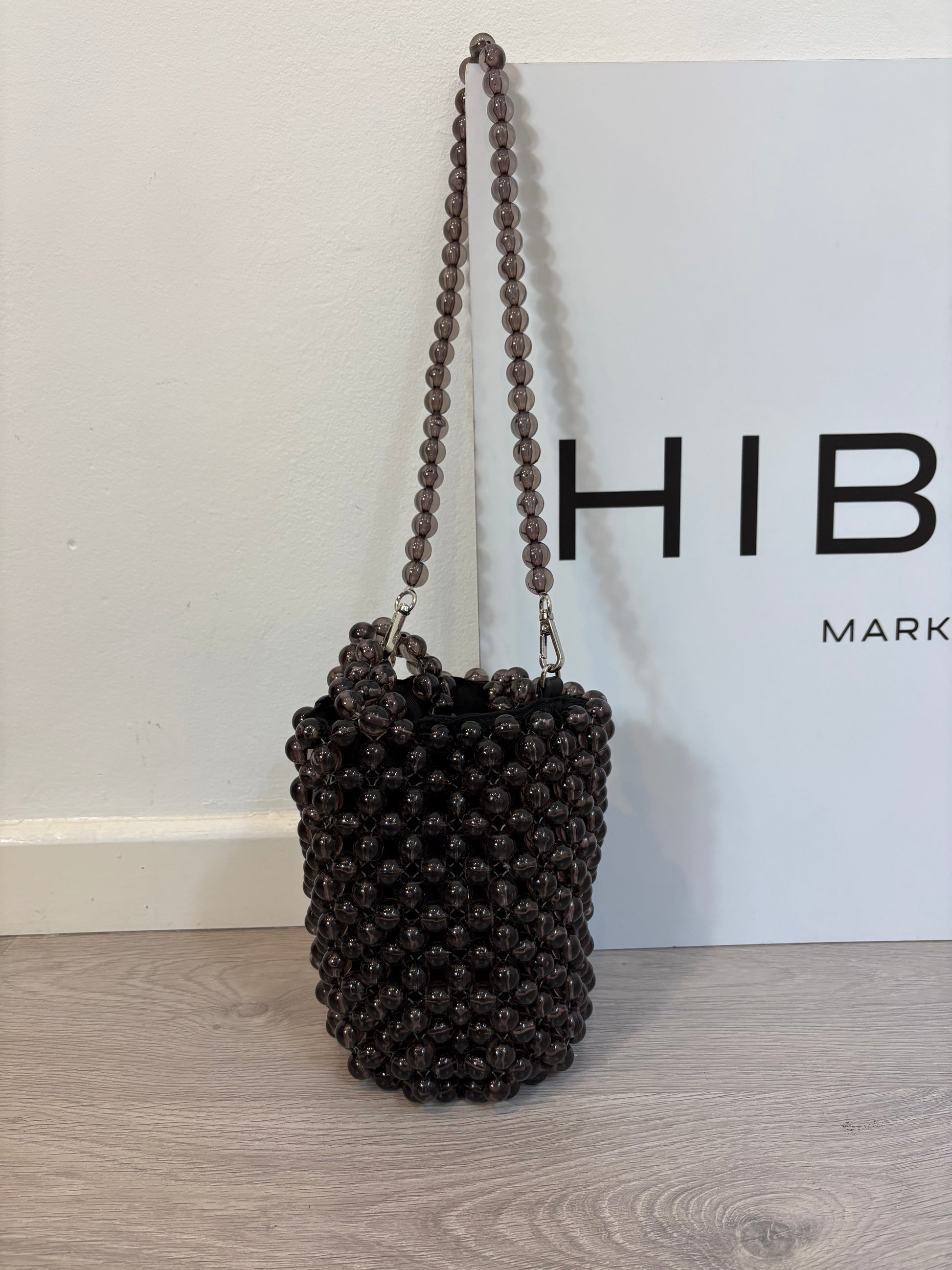 Bolso etilo saco gris bolas . ancho 21 cm alto 19 cm fondo 12 cm.