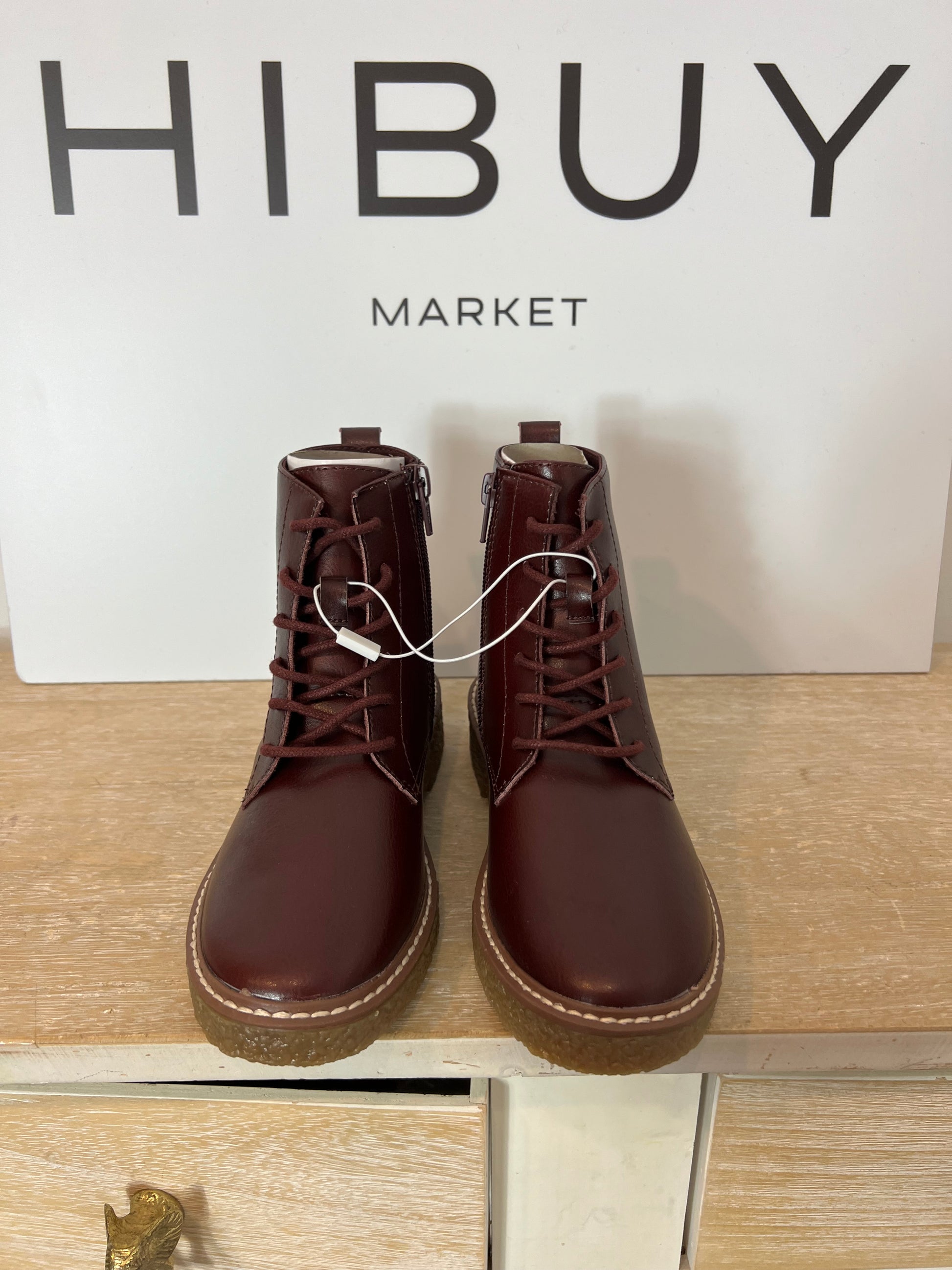 NUEVO CON ETIQUETA. botas burdeos con cordones y cremallera lateral.