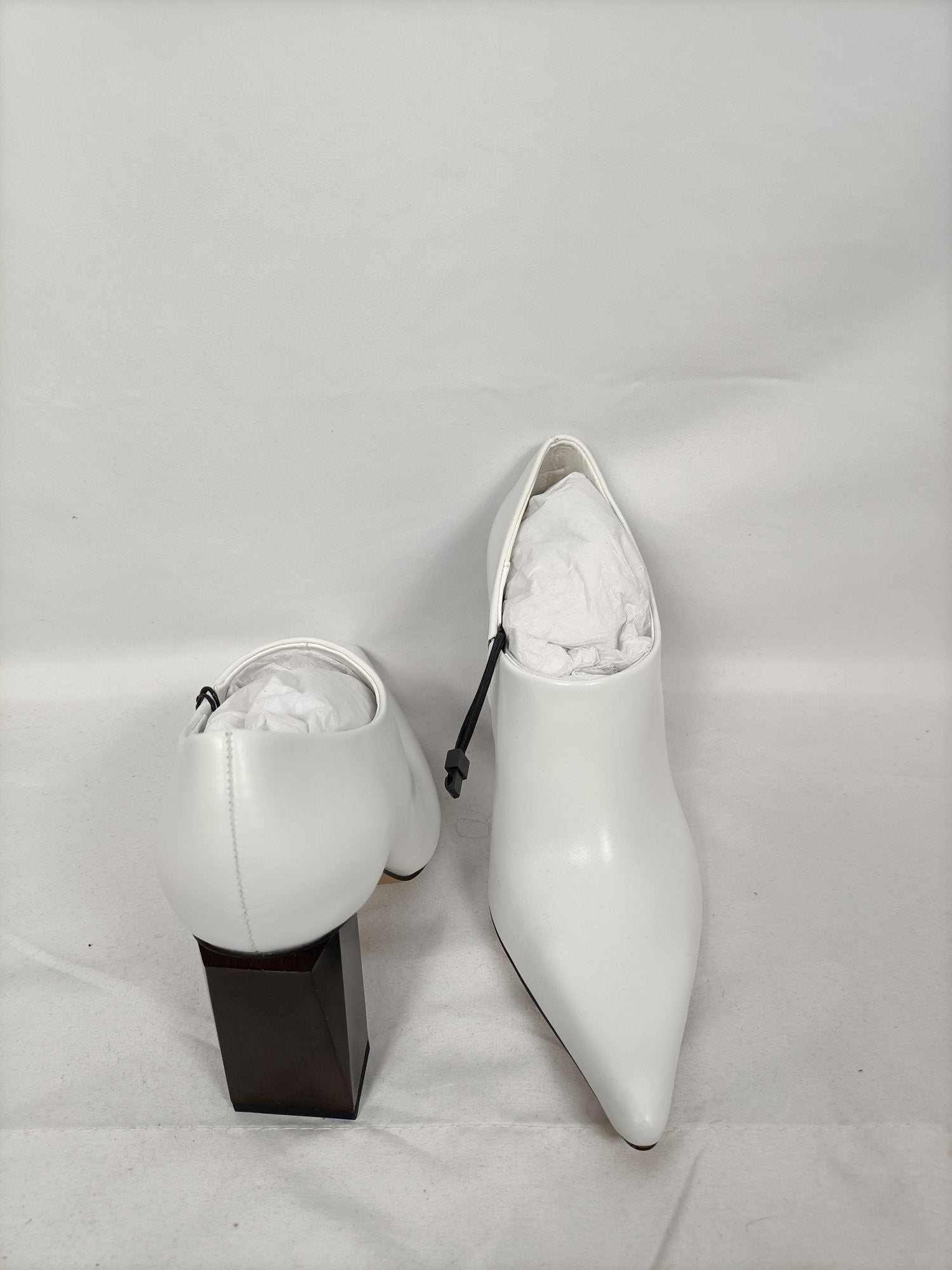 NUEVOS CON ETIQUETA. Botines de piel bajos. Tacón madera cuadrado de 9,5 cm