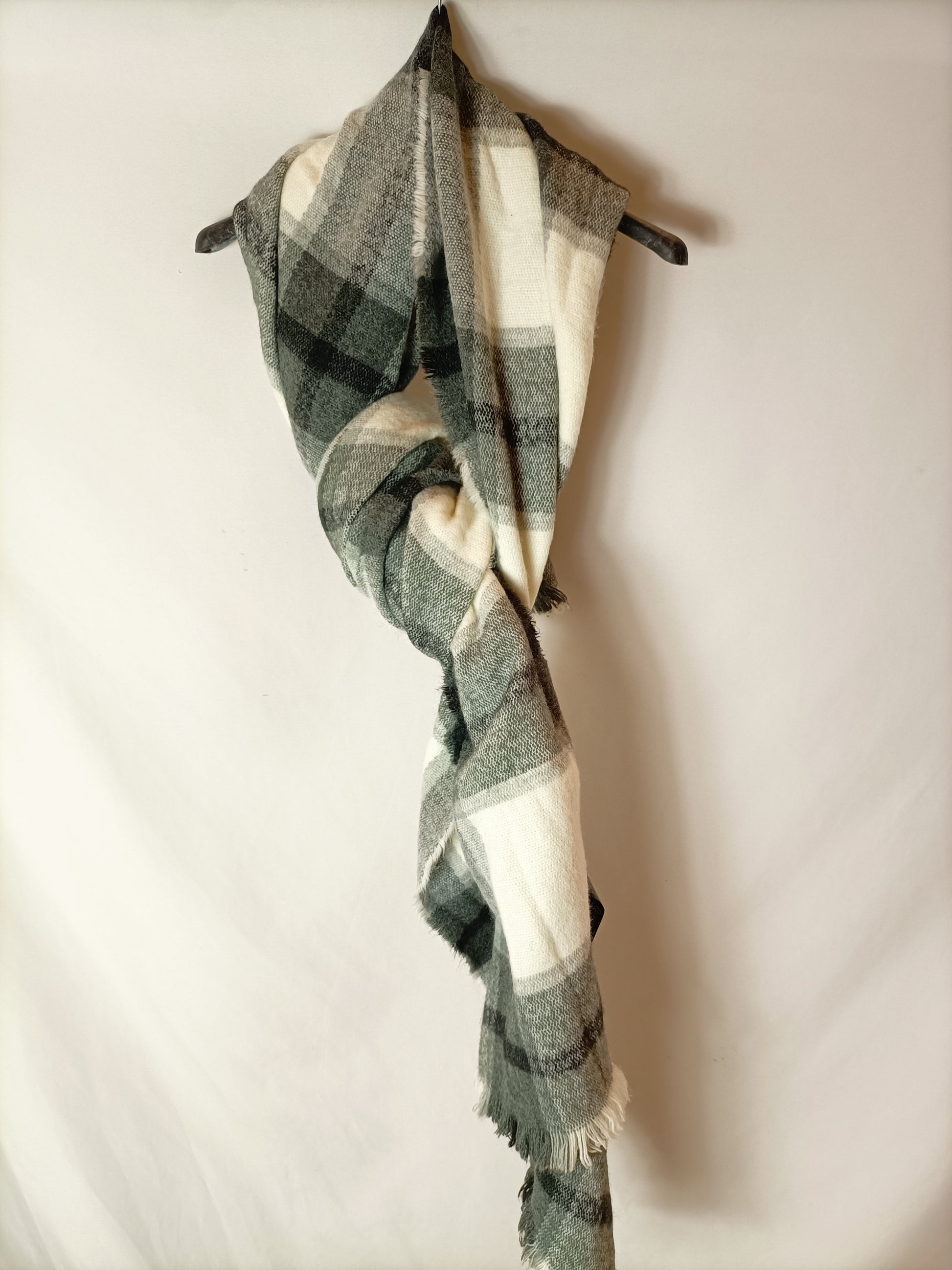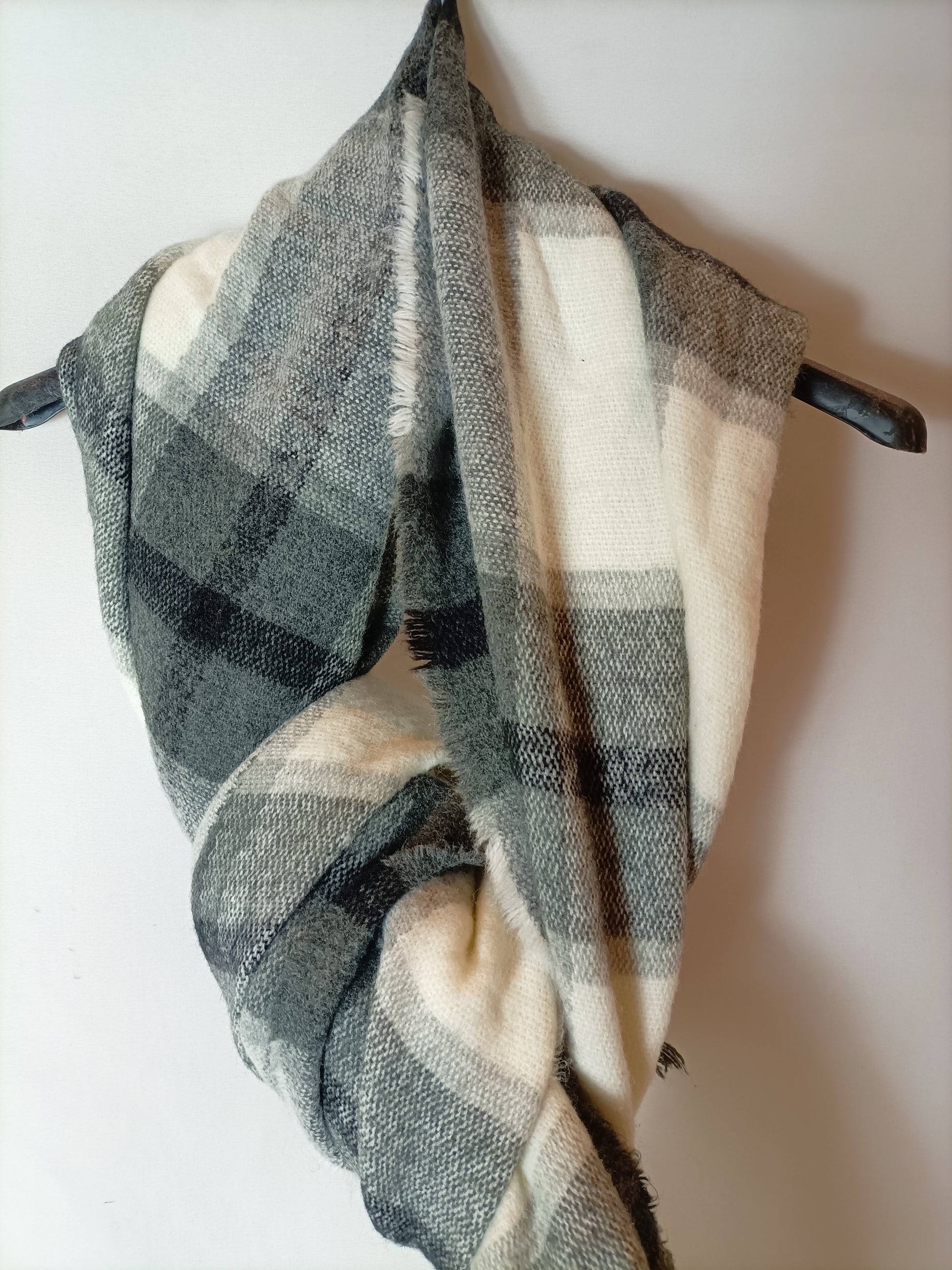 Bufanda blanca cuadros grises