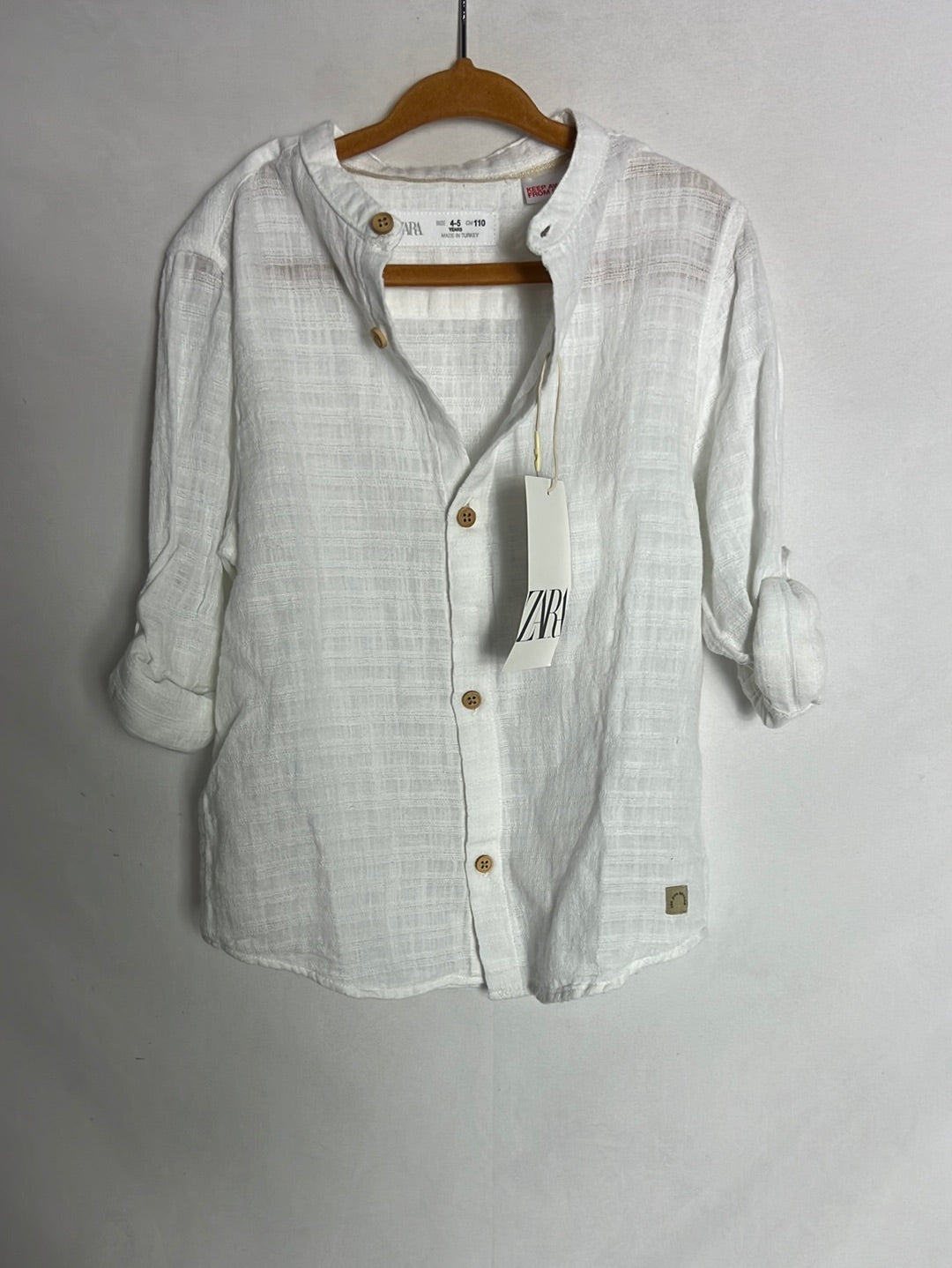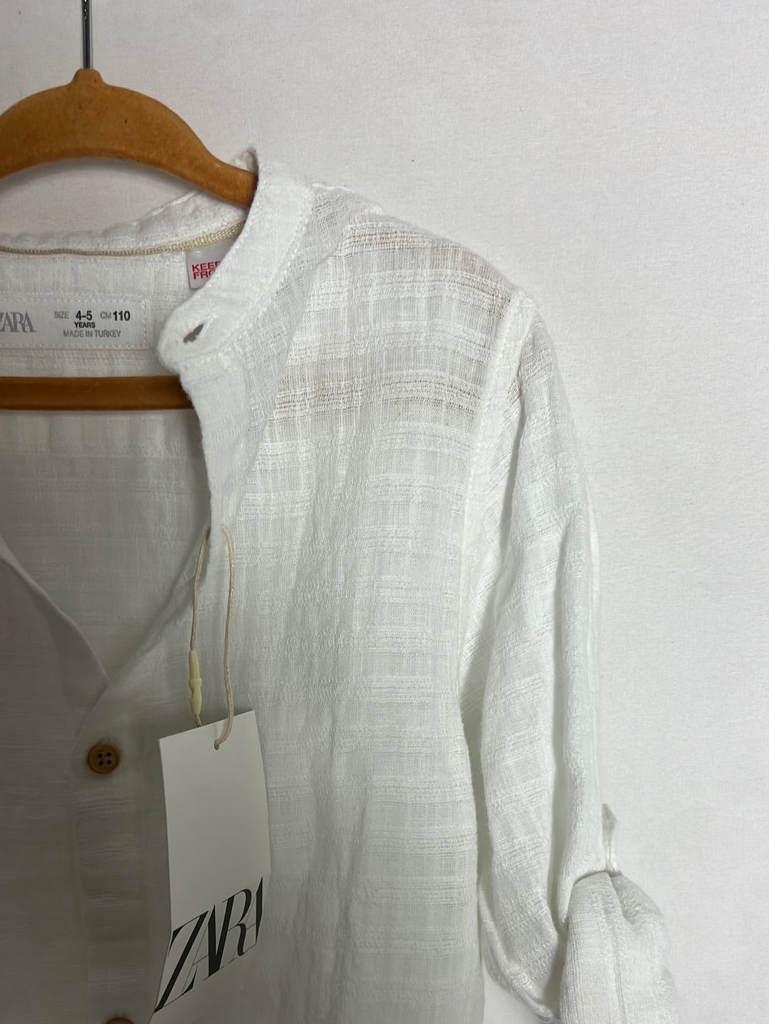 ZARA. Camisa blanca algodón jaspeada. T 4-5 años