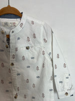 ZARA. Camisa blanca dibujos cuello mao T.9-12 meses