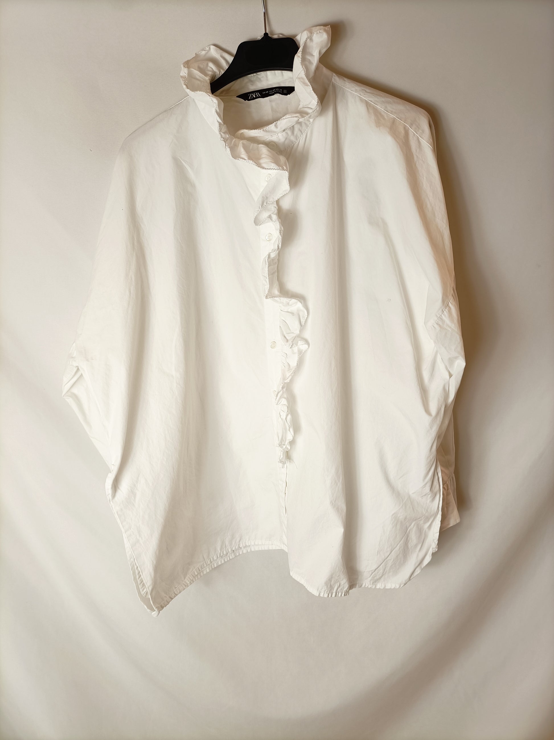 ZARA. Camisa blanca volante T.xs