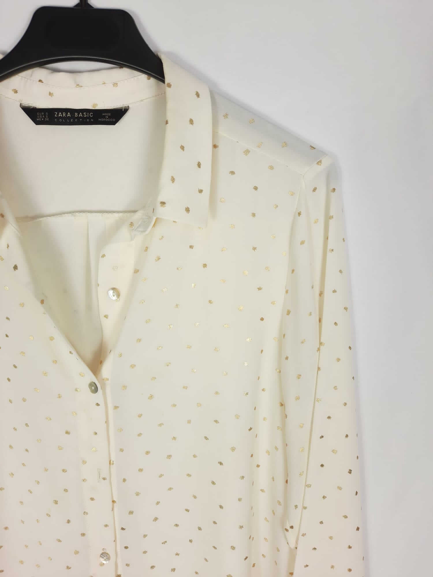 ZARA. Camisa blanco roto con topitos dorados T. s