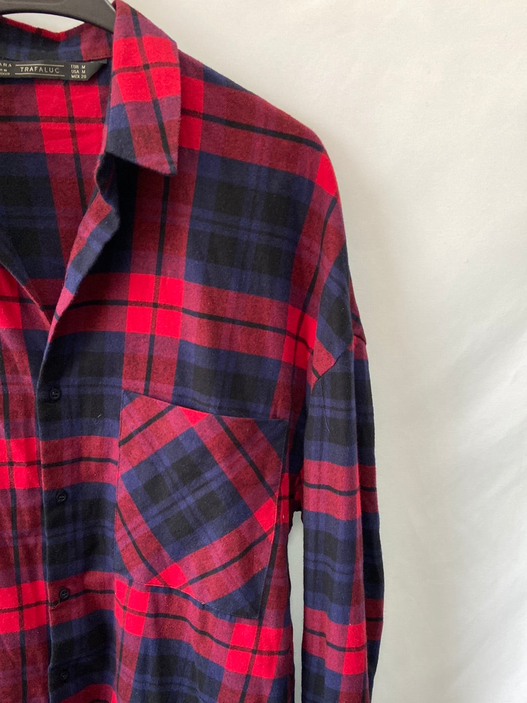 Camisa cuadros rojos y azules oversized. Largo 76 cm 100% algodón