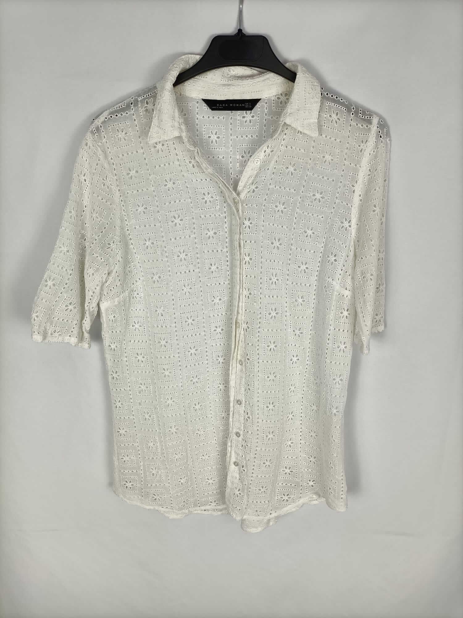 ZARA. Camisa manga corta blanca con bordado ingles T.s