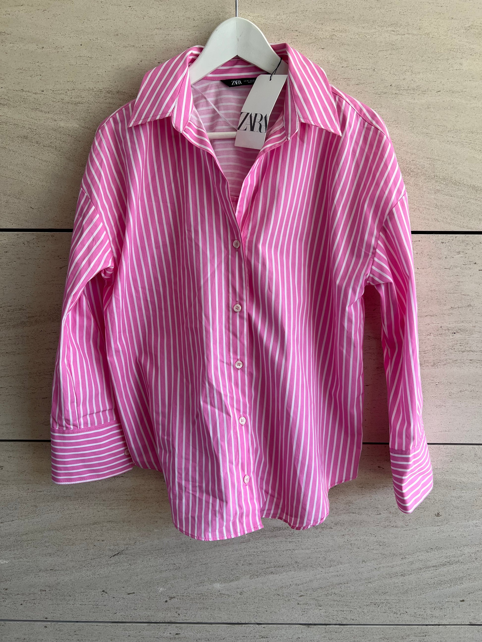 ZARA. Camisa rosa rayas. T XS