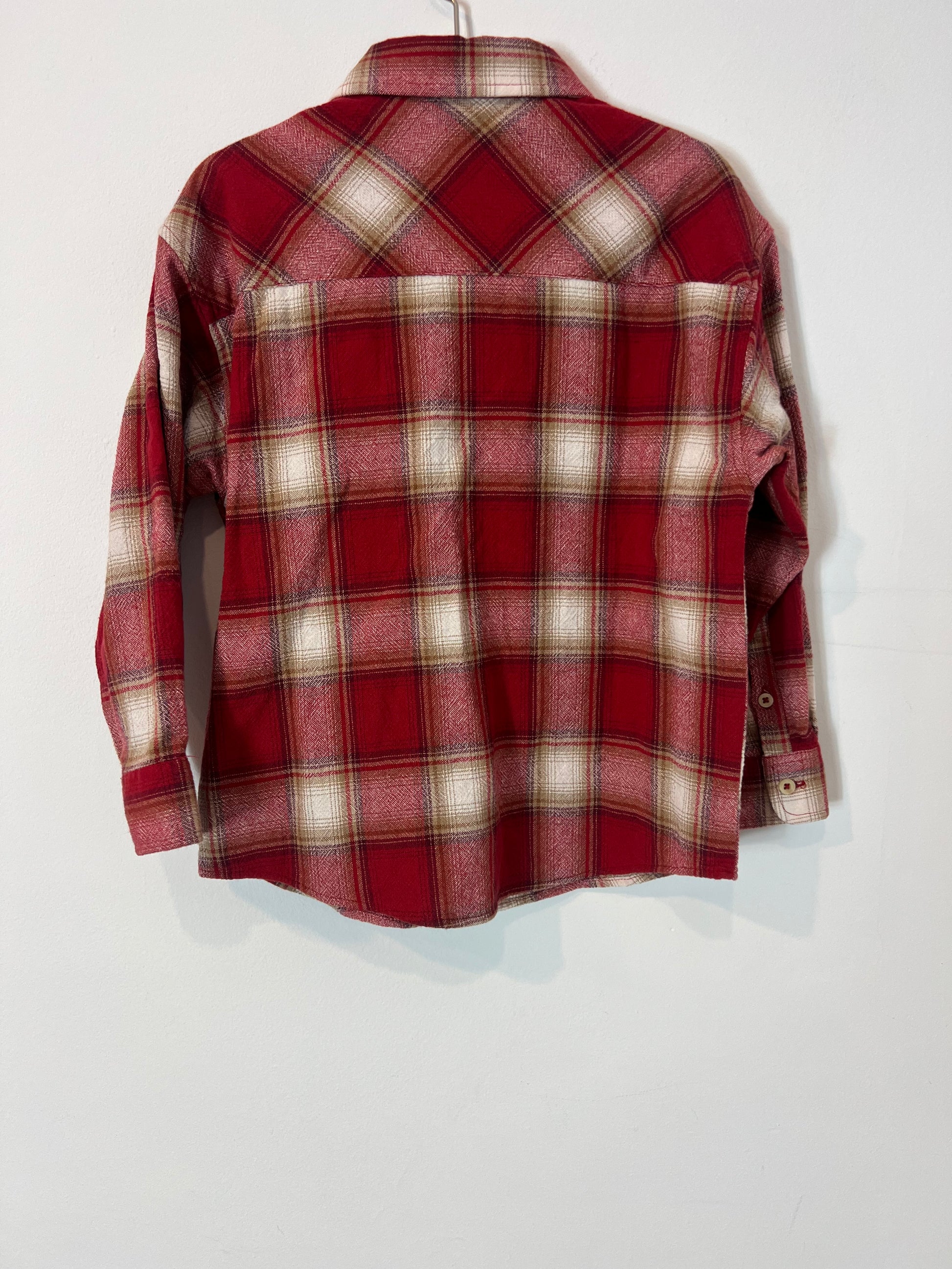 NUEVO CON ETIQUETA. Camisa textura cuadros rojos y beiges
