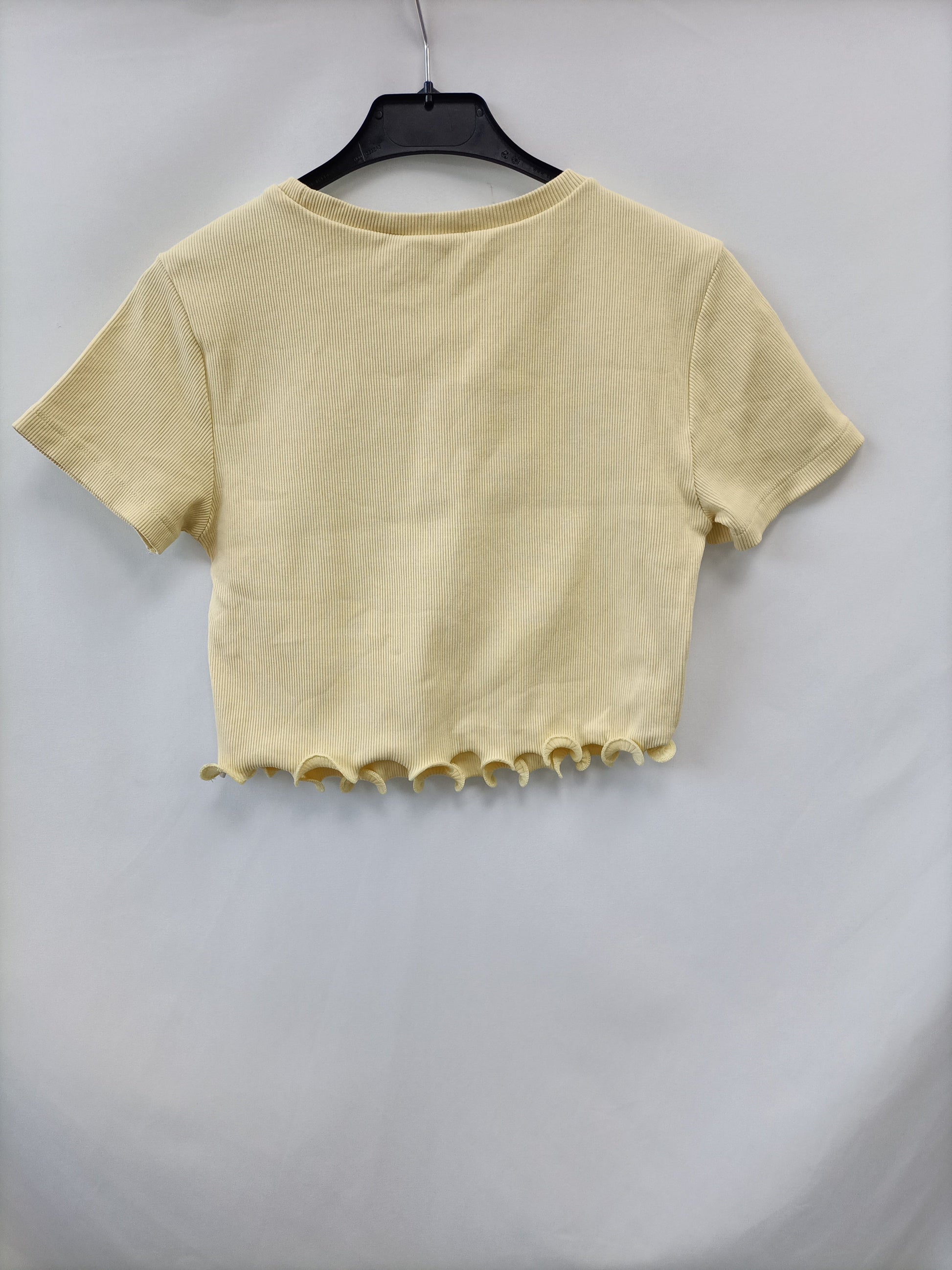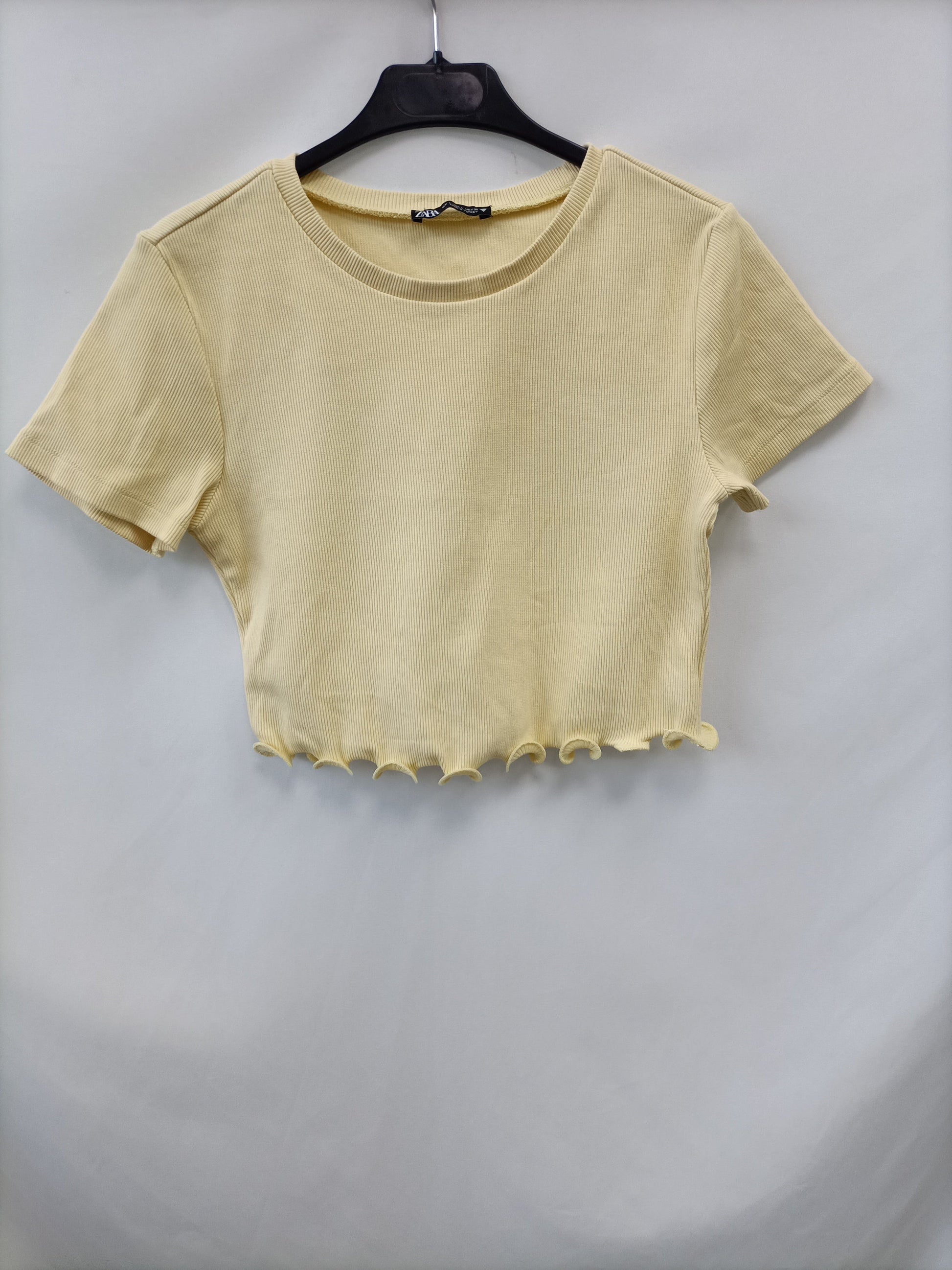 ZARA.Camiseta amarilla punto canalé T.L (M)