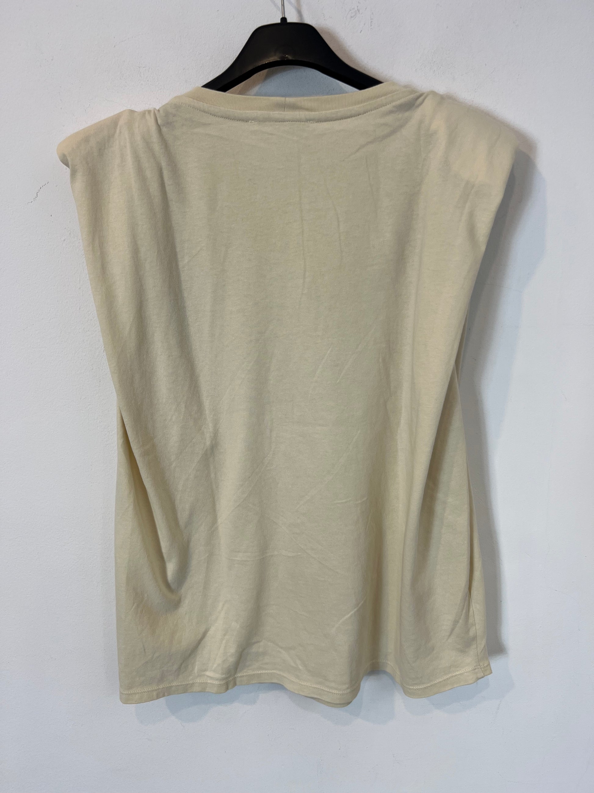 ZARA. Camiseta beige hombreras. T L