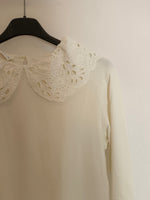 Camiseta blanco roto (beige claro) con cuello bebé troquelado.
