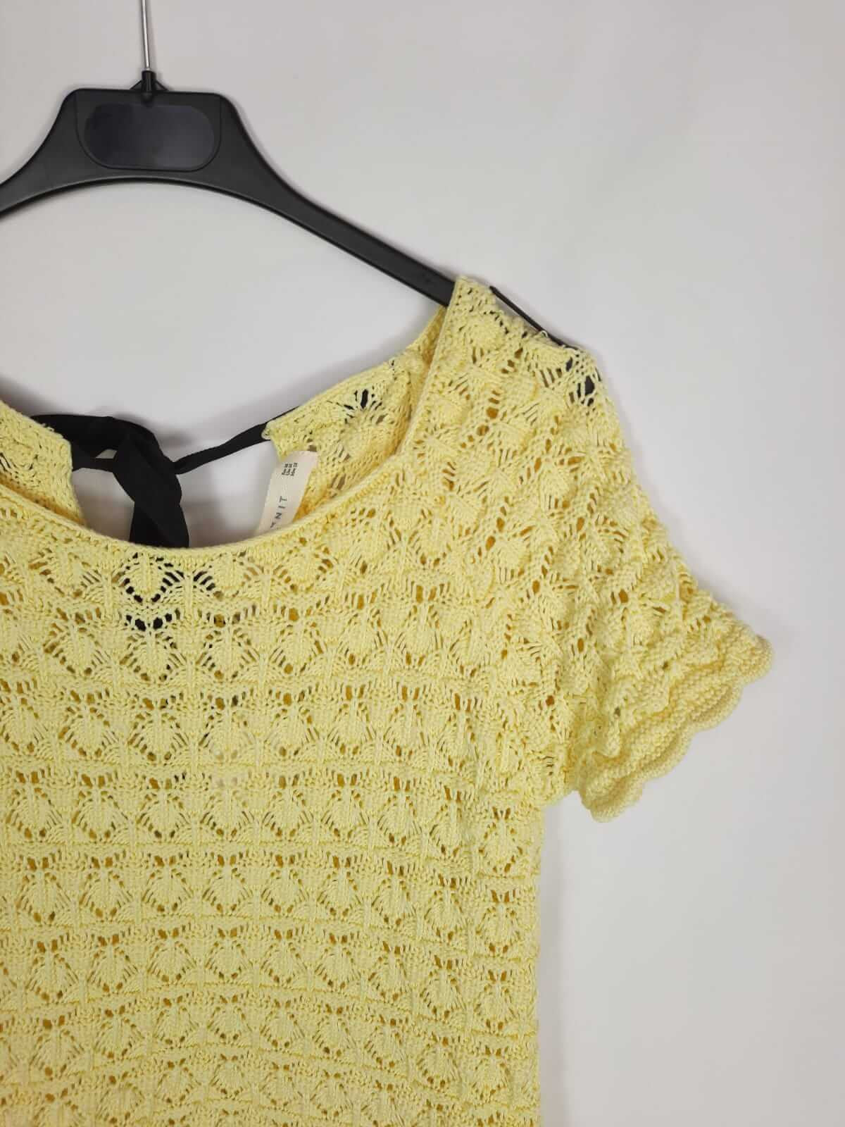 ZARA. Camiseta de croché amarilla T.m