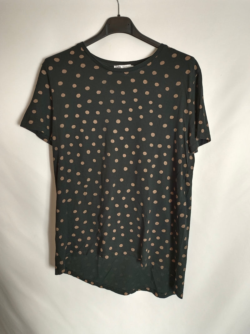 ZARA. camiseta negra lunares T.s