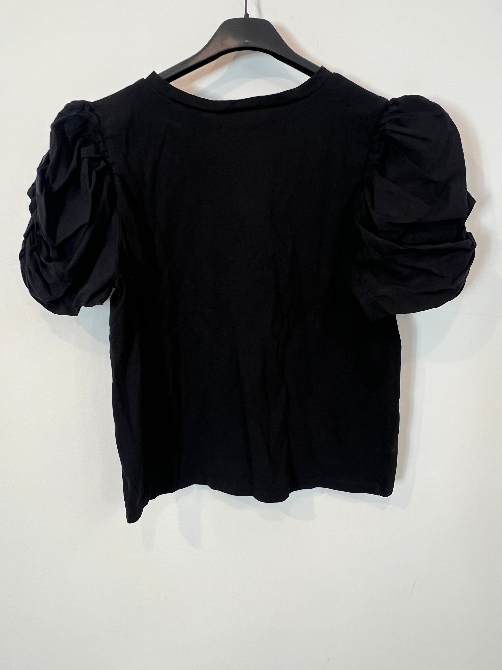 camiseta negra detalle de mangas fruncidas y abullonadas-