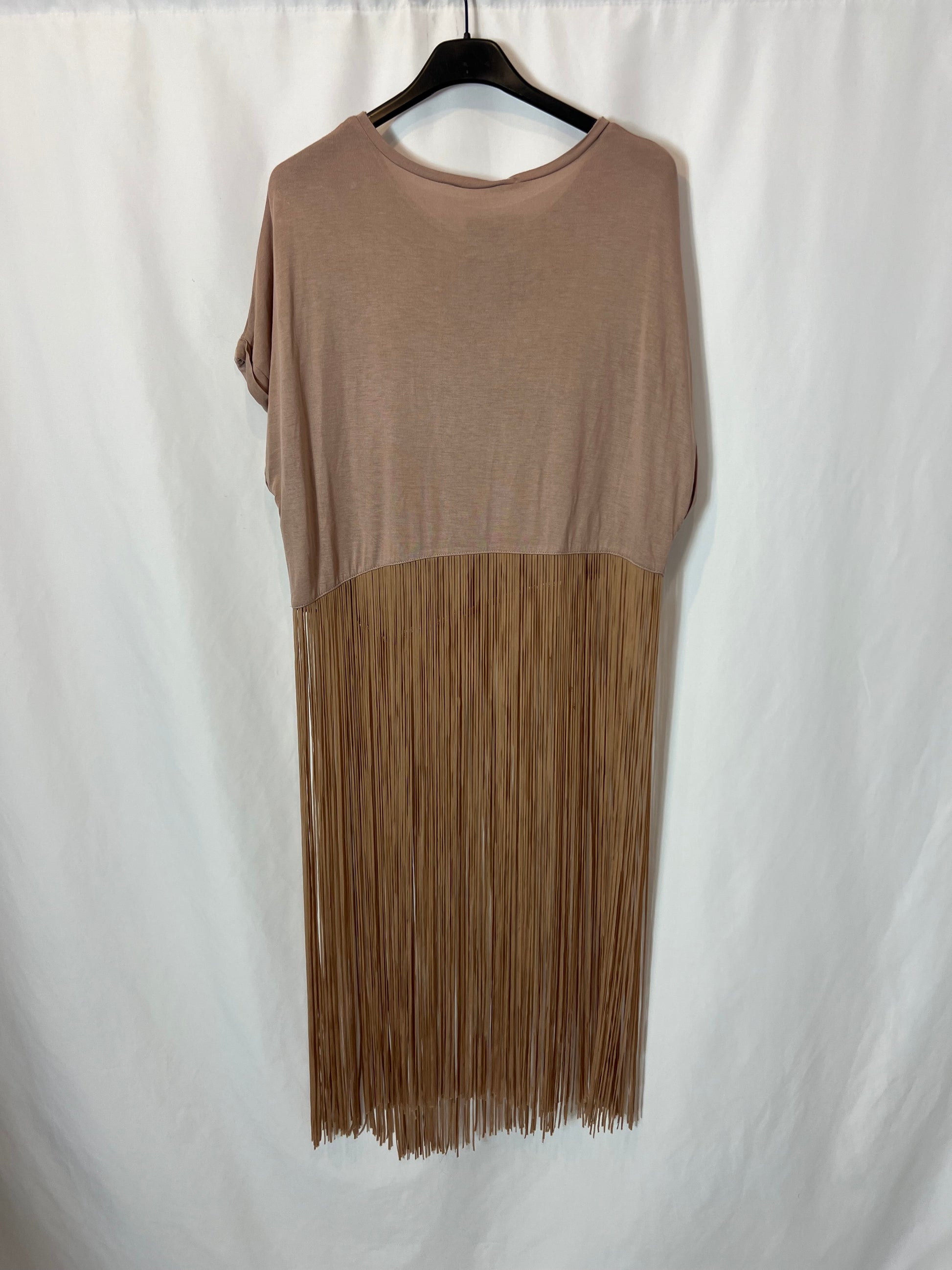 camiseta rosa con flecos . Largo 106cm