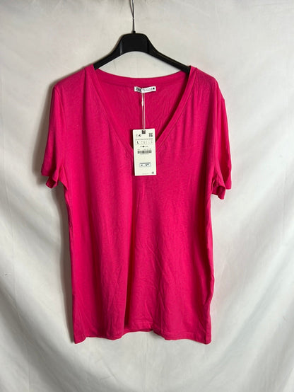 NUEVO CON ETIQUETA.camiseta rosa escote pico